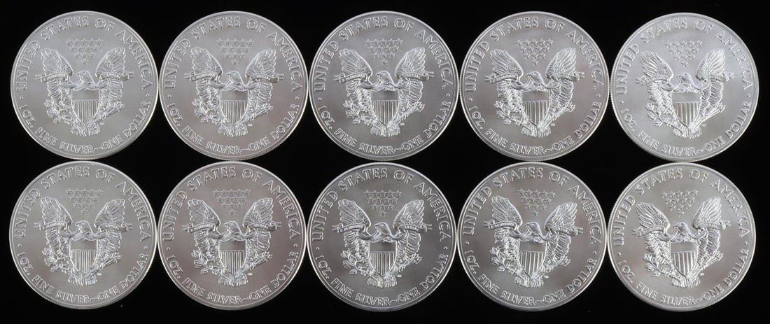 10 Troy ounces of silver 1 oz US silver dollar American Eagle coins