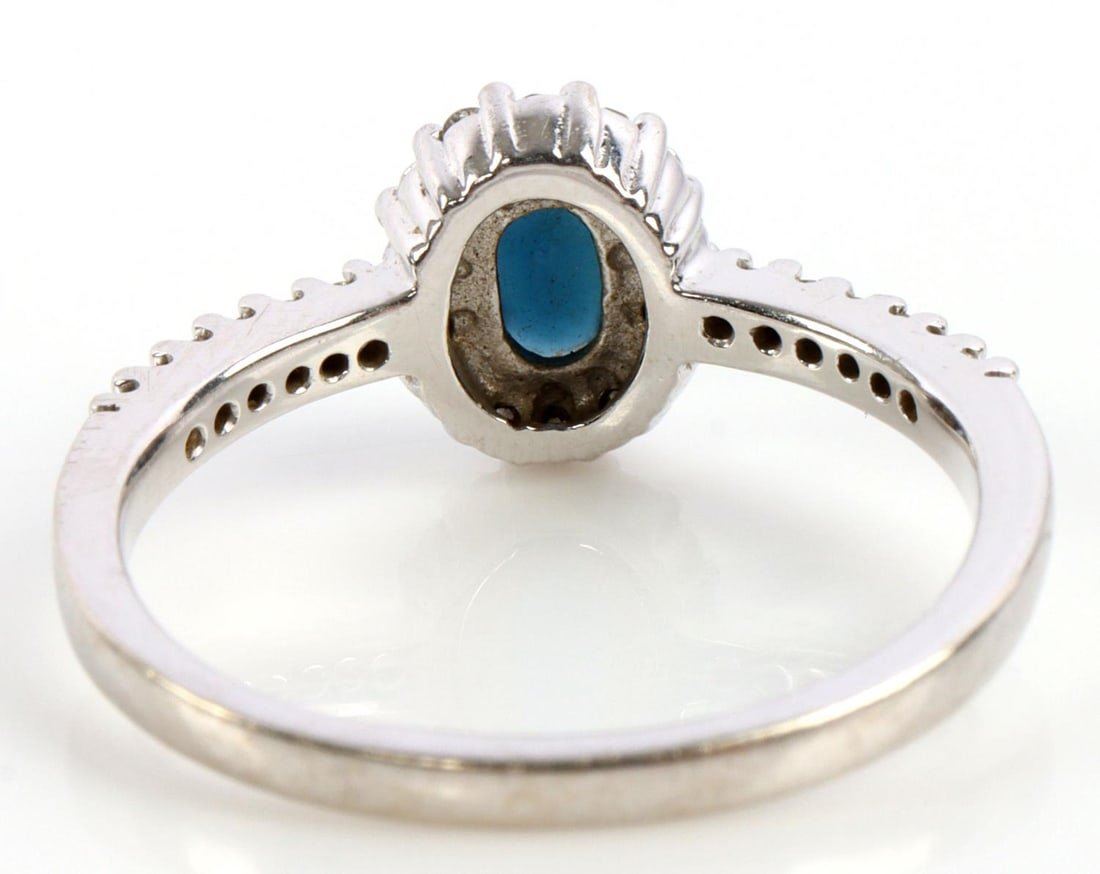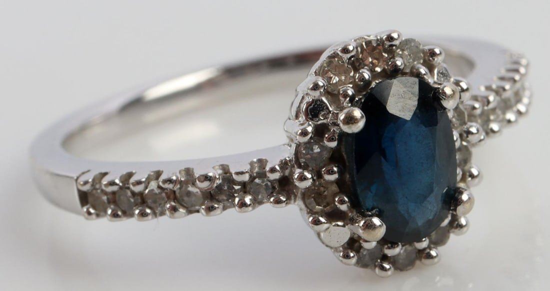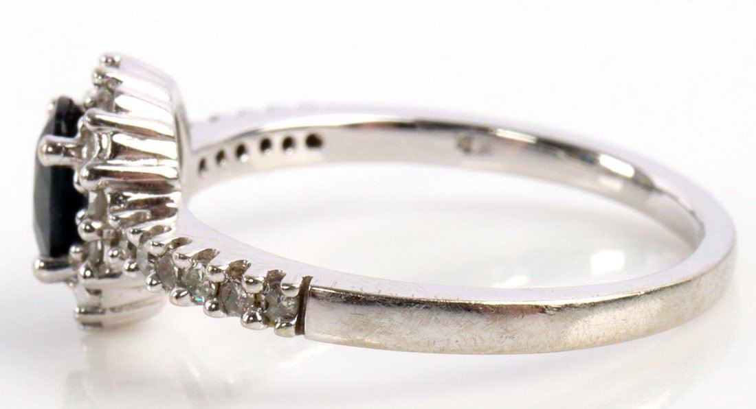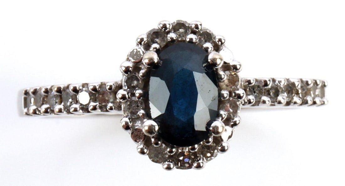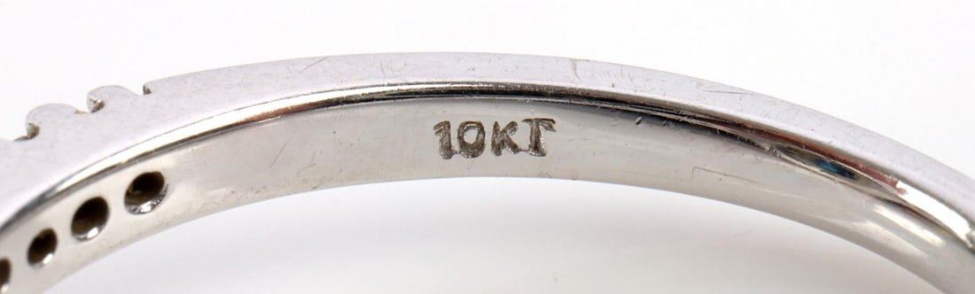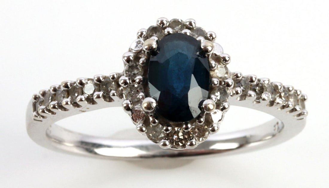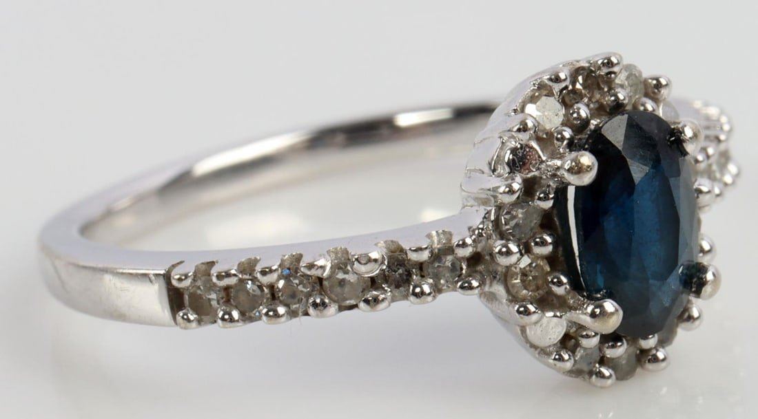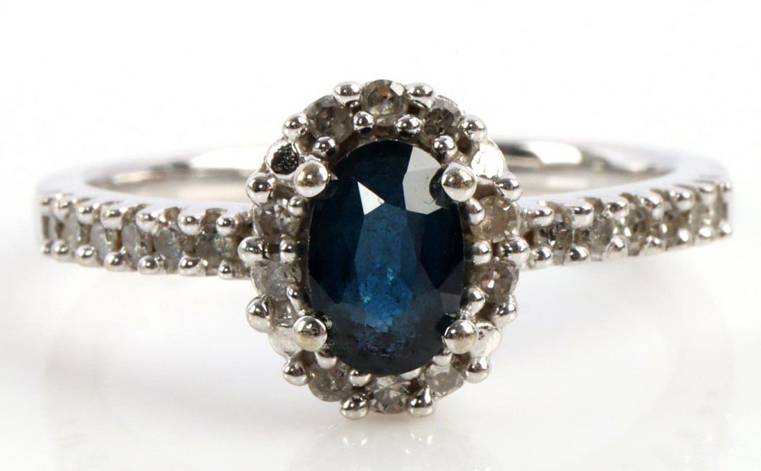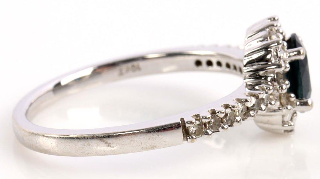 Stamped "10K" inside shank. Sapphire measures 6.15 millimeters. In very good conditon, size 6.5. Total weight 2.5 grams. This lot has a reserve.