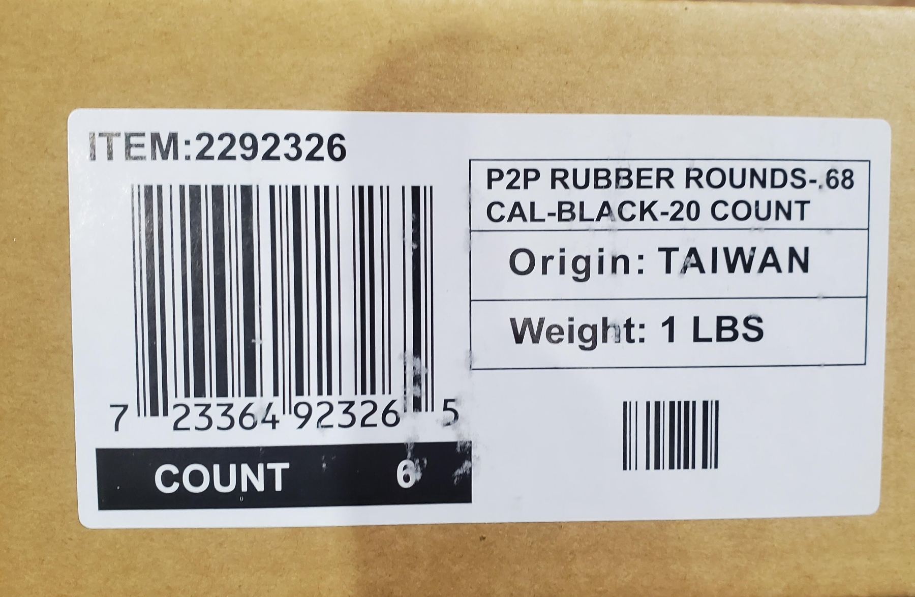 each box contains 6 bags of 20 rounds. 68 cal rubber balls for use in non lethal pistols.