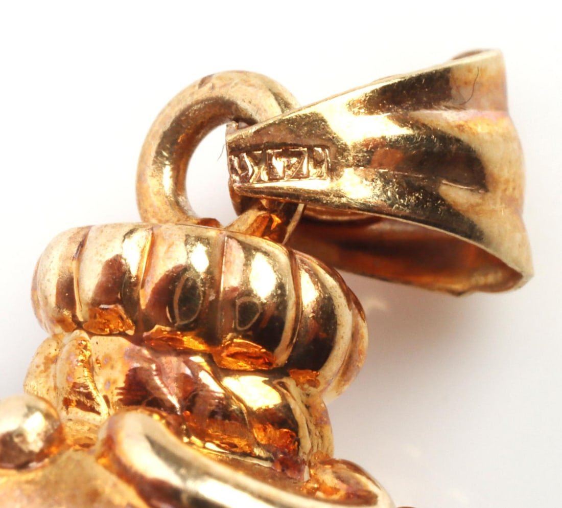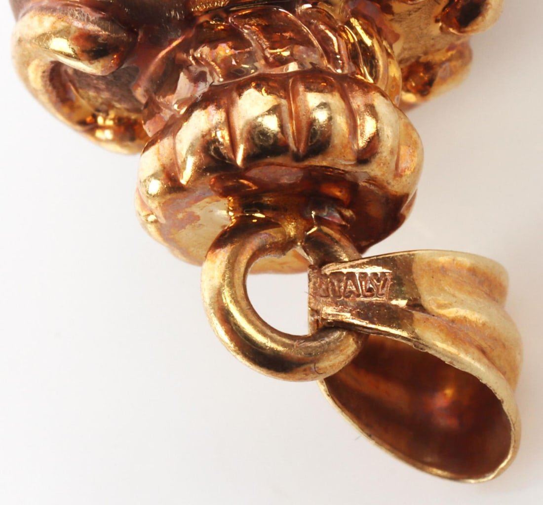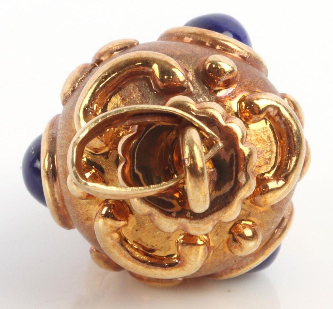 Vintage 1990's Italian Baroque style 14kt gold pendant with Lapis Lazuli and pearl cabochon. Total weight of 2.9 grams. Length of 1 3/8 inches. This lot has a reserve.