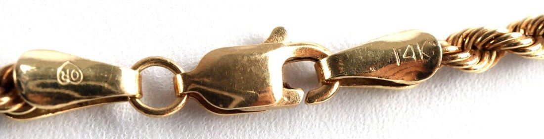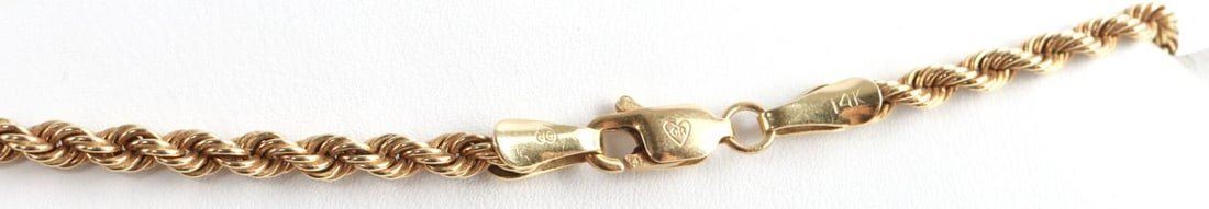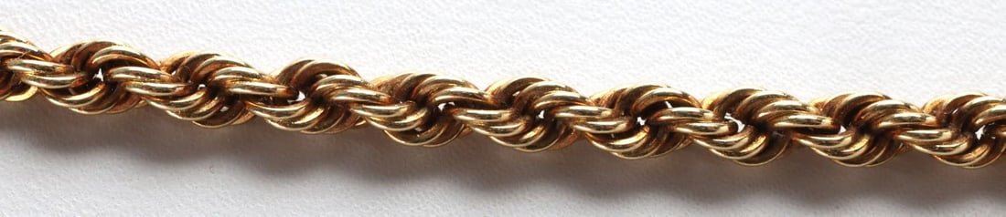 14 kt yellow gold heavy twist chain necklace measuring 24 inches in length with a weight of 18.8 grams. This lot has a reserve.