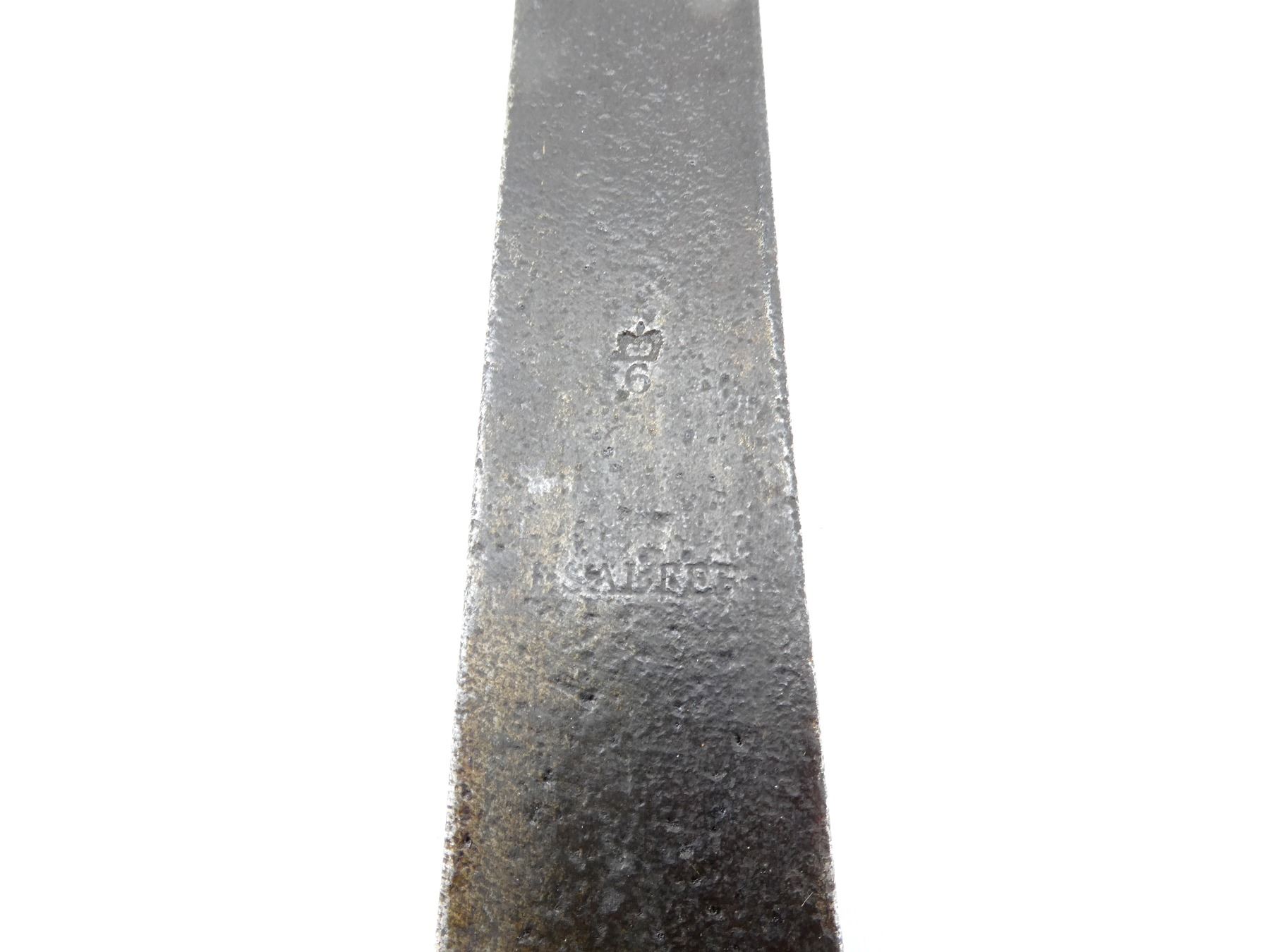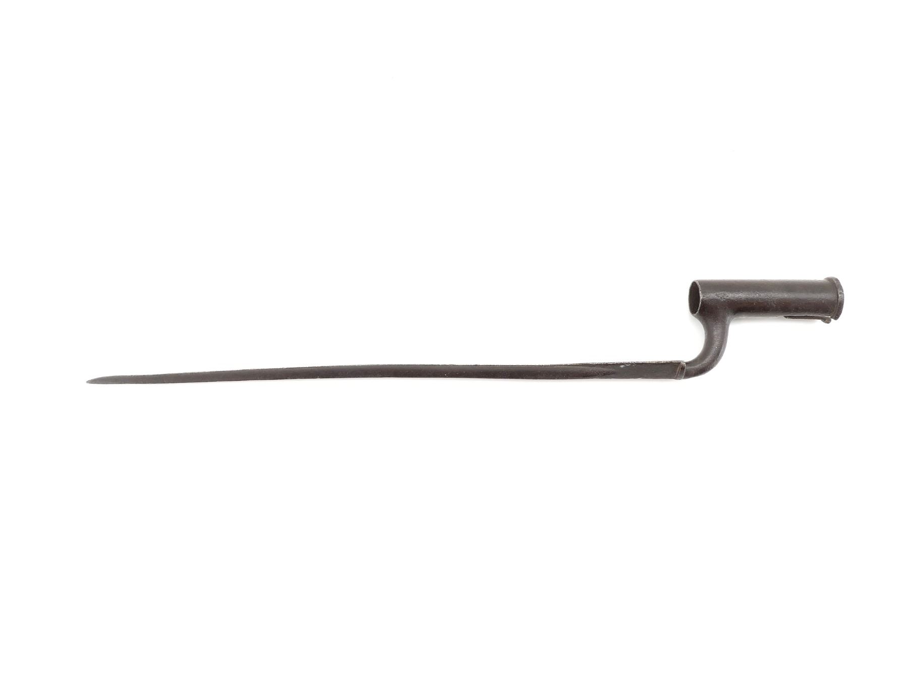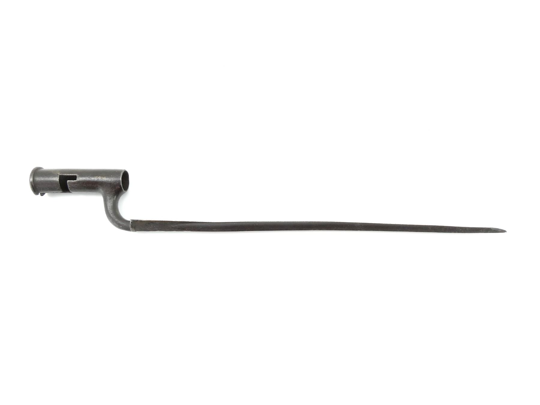(1) FITS BROWN BESS MUSKETS, BLADE MARKED: CROWN OVER "6" OVER "?SA?TER", NO VISIBLE MARKINGS ON SOCKET, NO SCABBARD, BLADE WIDTH APPROX. 30MM, SOCKET LENGTH APPROX. 3 7/8", MUZZLE RING APPROX. 0.966" DIA., BLADE APPROX.16 7/8" & OVERALL LENGTH APPROX. 21 3/8". SEE PHOTOS.