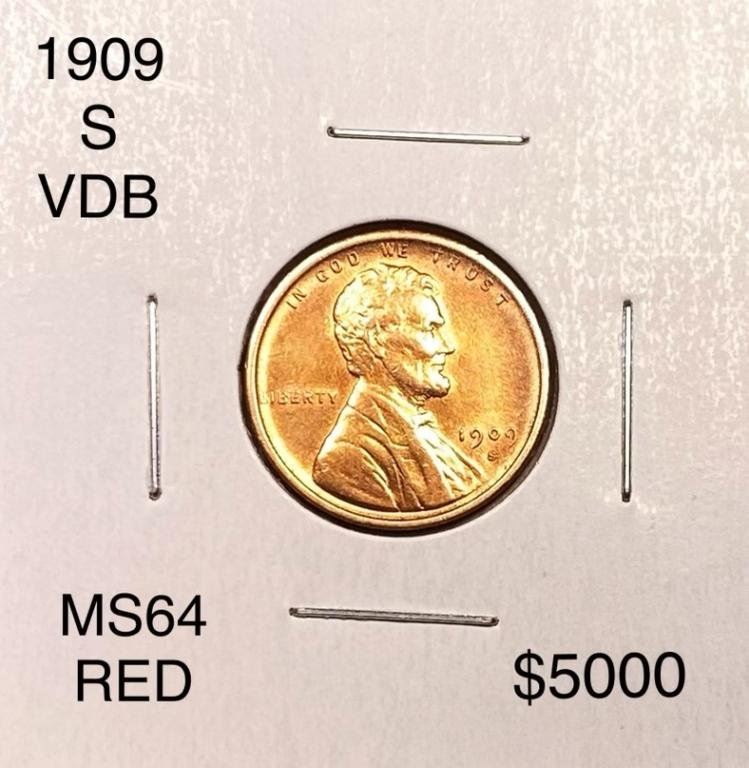 1909-S V.D.B. Lincoln Wheat Penny CHOICE BU RED