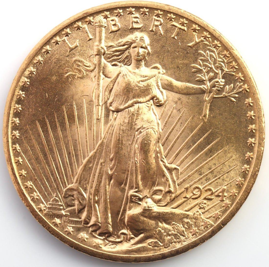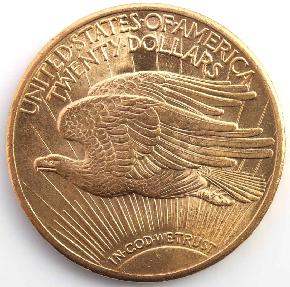 Saint-Gaudens $20 gold coin. Condition approx. Mint State with some very fine contact marks in the field, luster and eye appeal. This lot has a reserve.