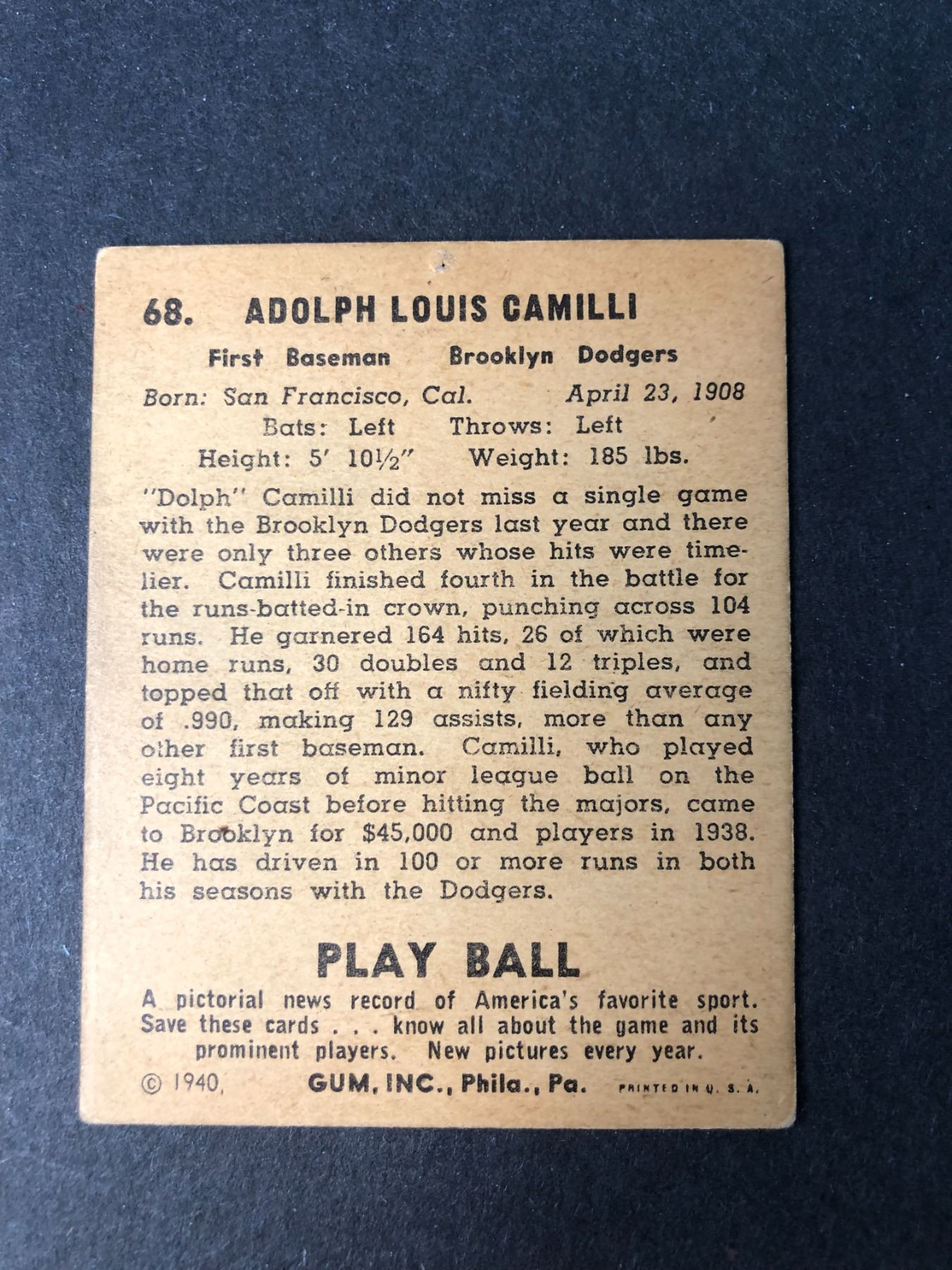 1940 Play Ball baseball card - 68