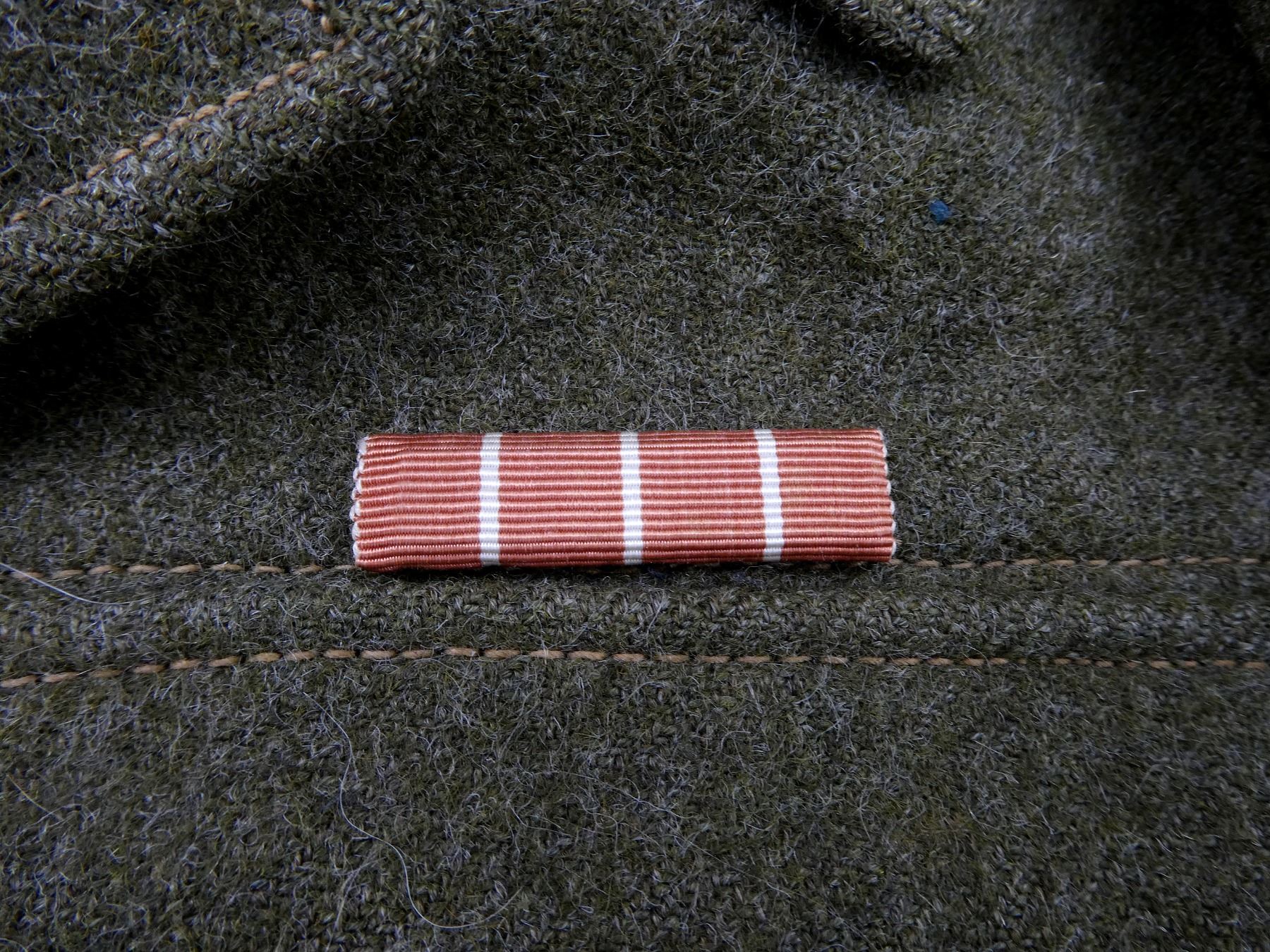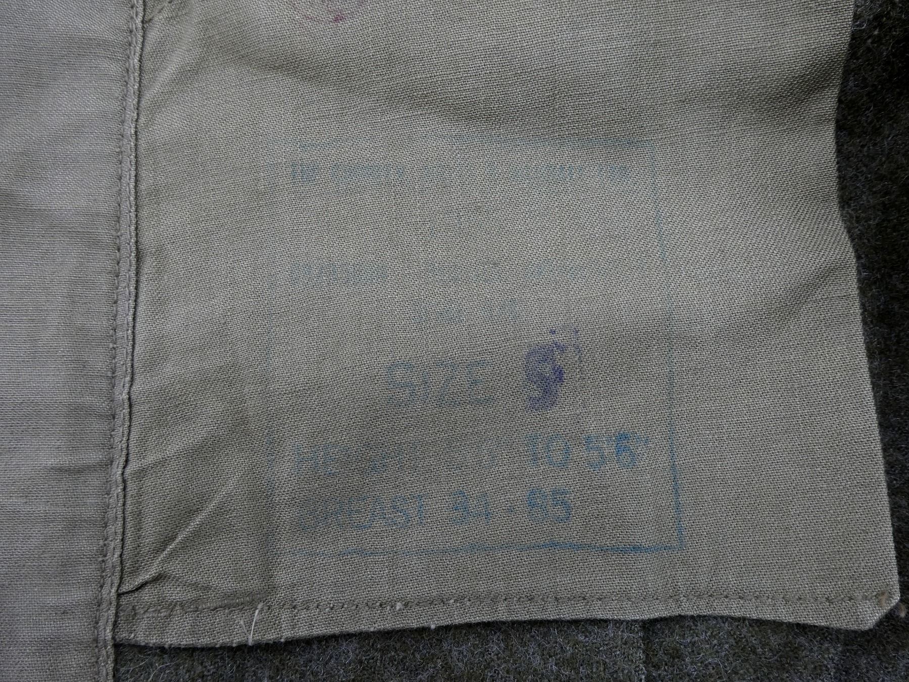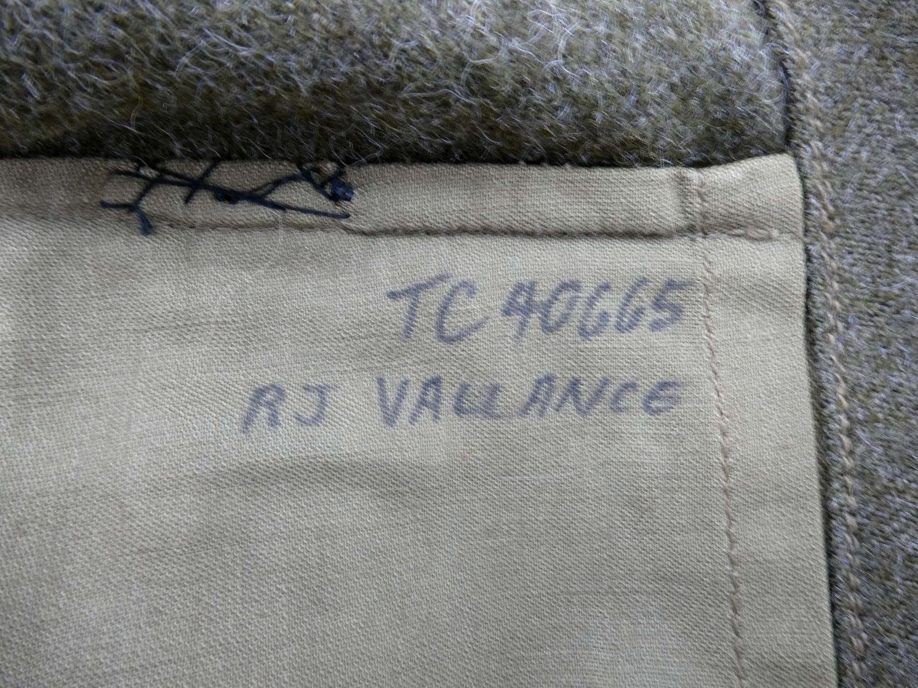 LOT INCLUDES; (1) OLIVE GREEN WOOL BATTLE DRESS TUNIC, VARIOUS FAINT / UN-CLEAR INK STAMP MARKINGS WITH MAPLE LEAF PROOF MARK, HAND-WRITTEN MARKED: "TC 40665, RJ VALLANCE", SIZE SMALL, HEIGHT 5'5" TO 5'6", BREAST 34 - 35, ROYAL CANADIAN SIGNALS WOOL SHOULDER FLASH, RANK PIPS, BRAIDED PISTOL LANYARD, CANADIAN FORCES' DECORATION RIBBON BAR, BUTTON-FRONT, SHOWS SLIGHT WEAR. SEE PHOTOS.