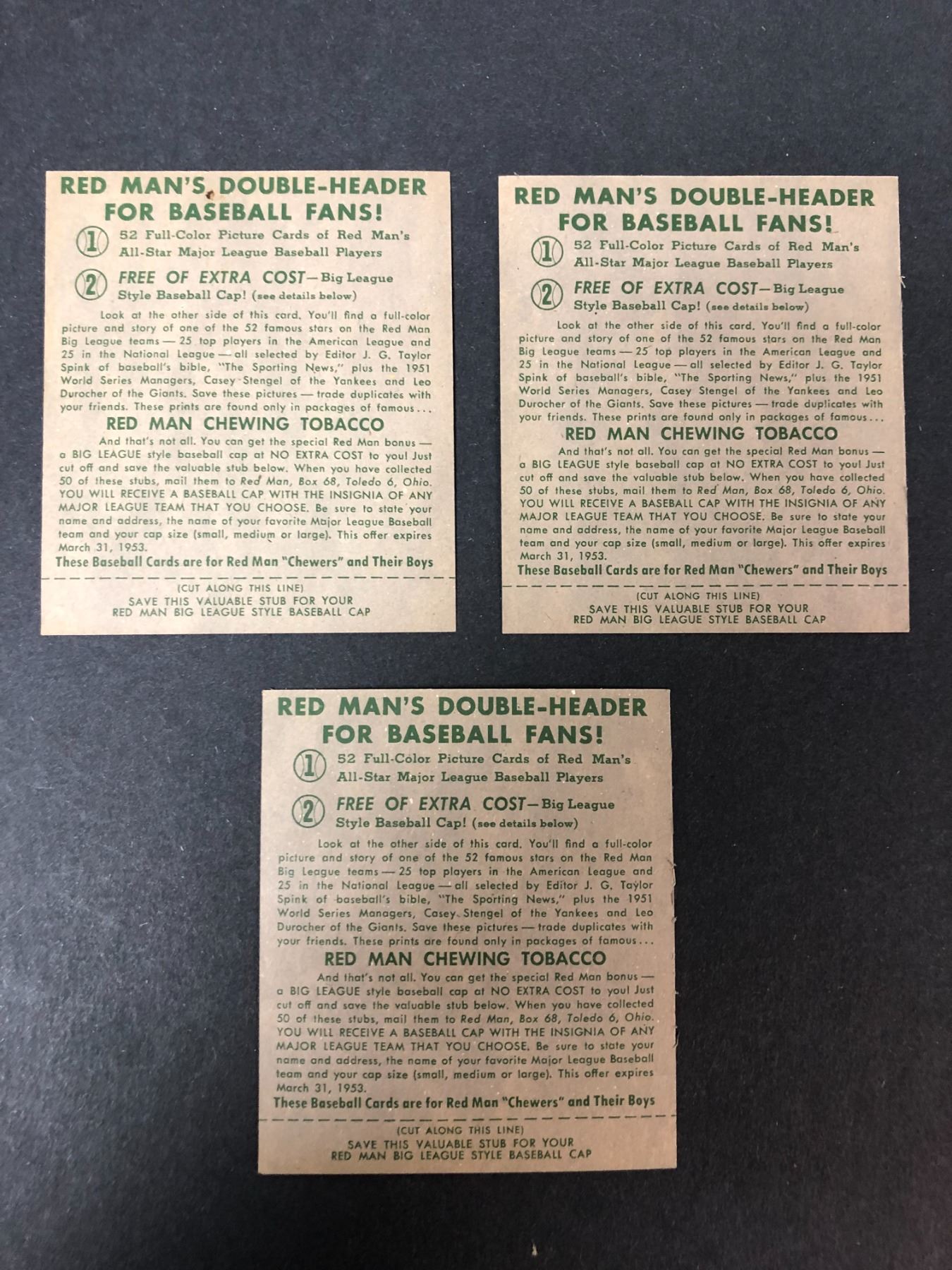 Lot of 3 1952 Red Man Chewing Tobacco over sized cards