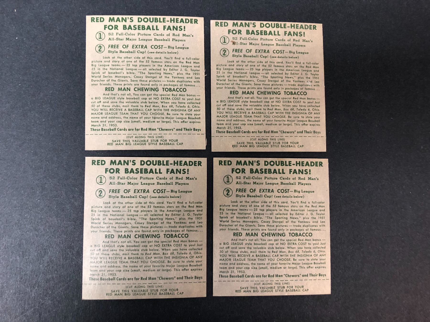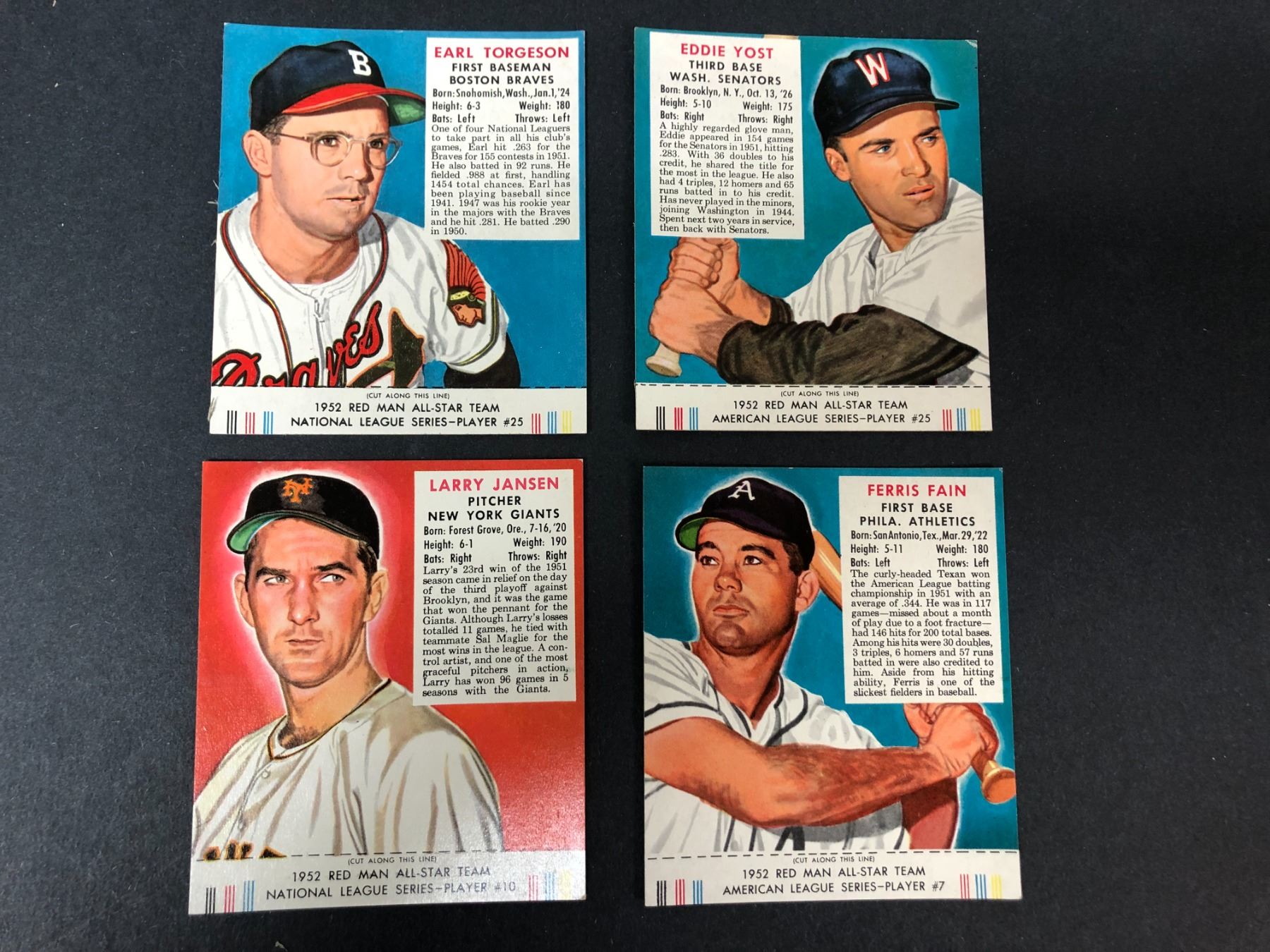1952 Red Man LOT x4 w/ TABS! - Yost, Jansen, Fain, Torgenson