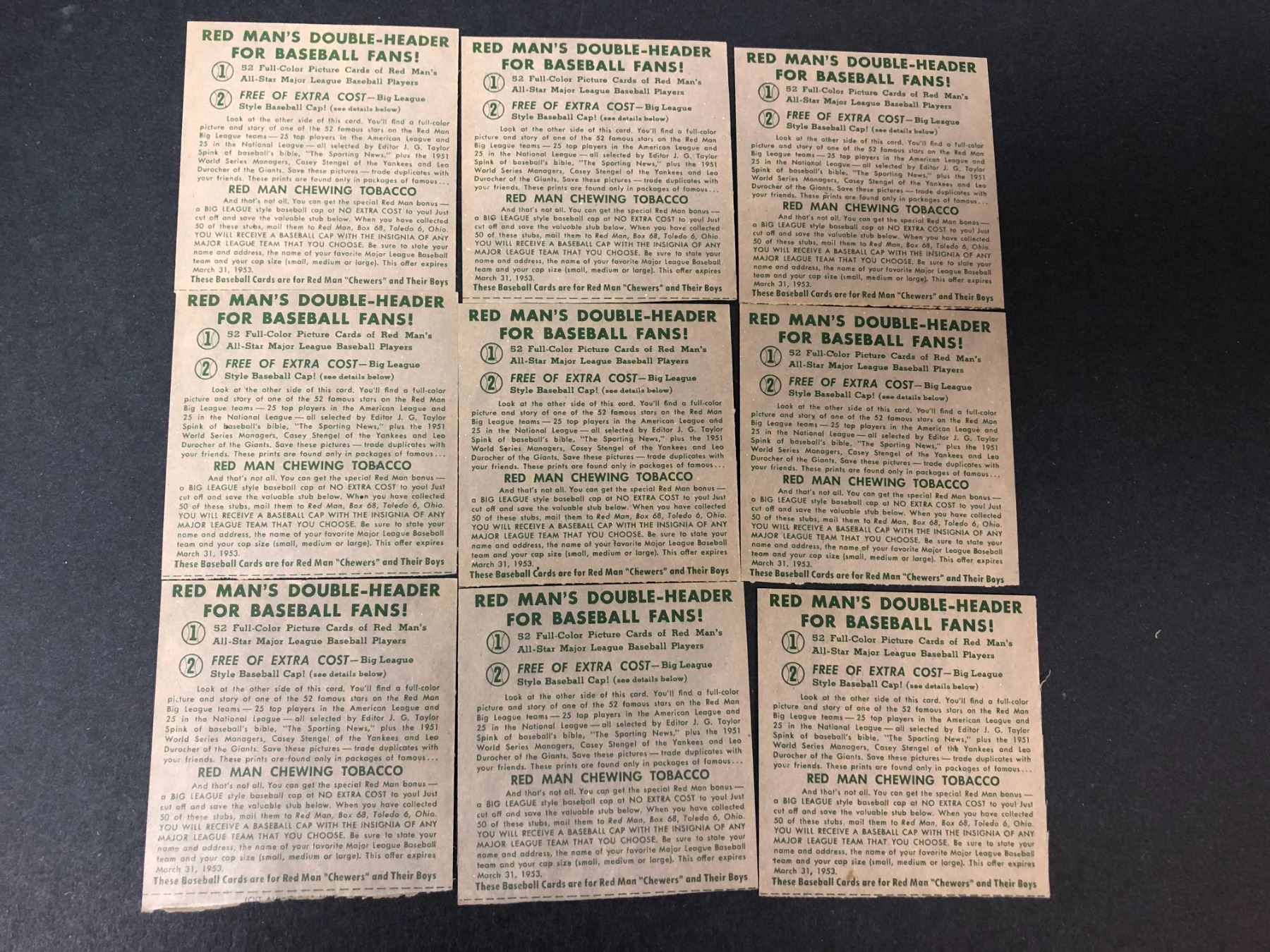 1952 Red Man Chewing Tobacco over sized card lot of 9