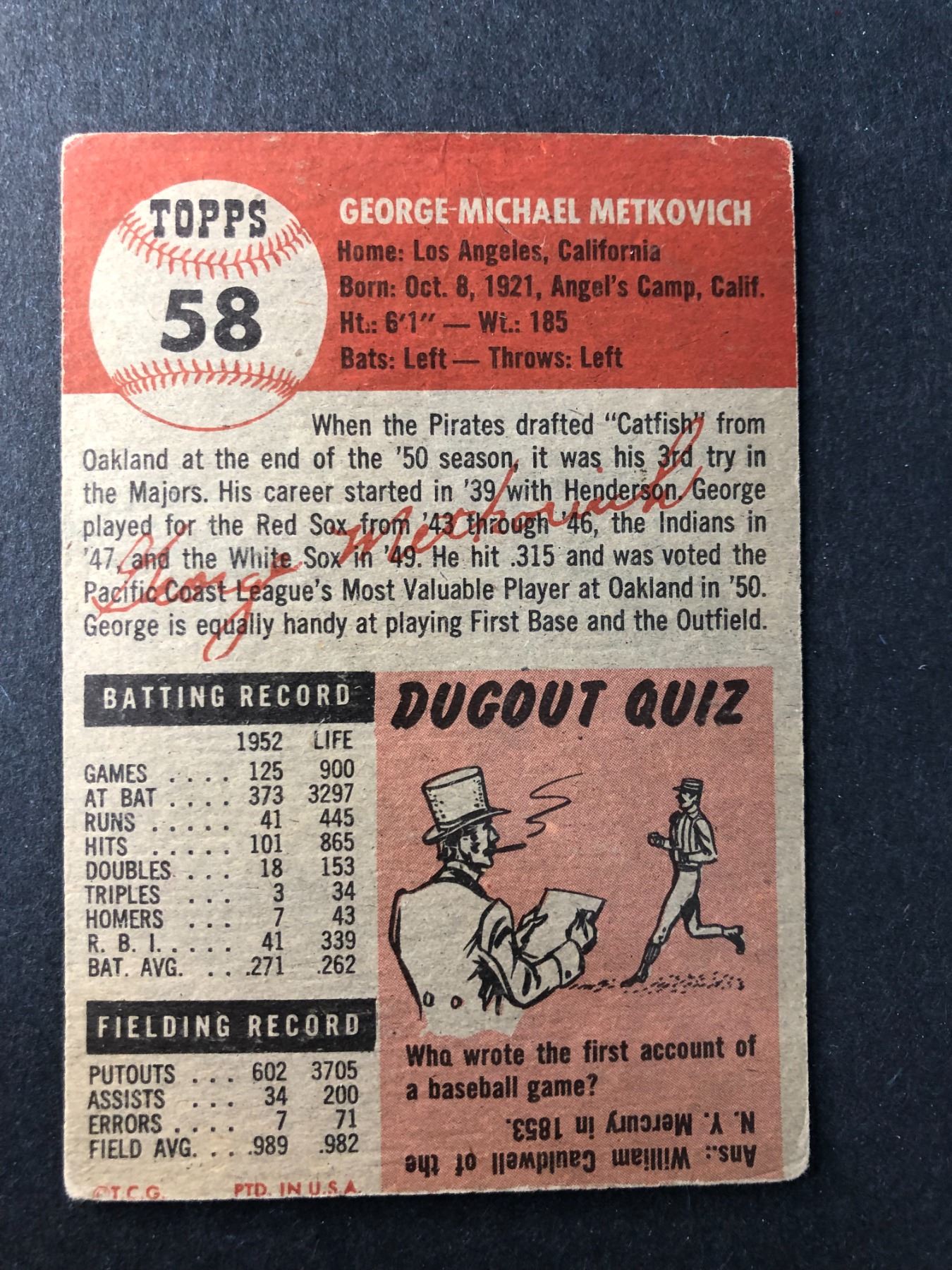 1953 Topps - George Metkovich - Pirates