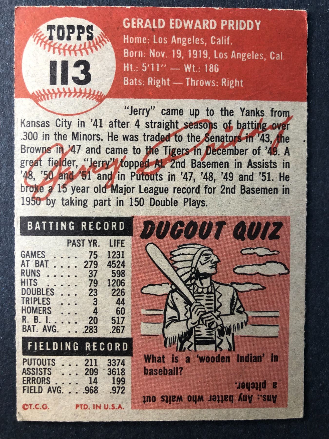1953 Topps - Jerry Priddy - Tigers