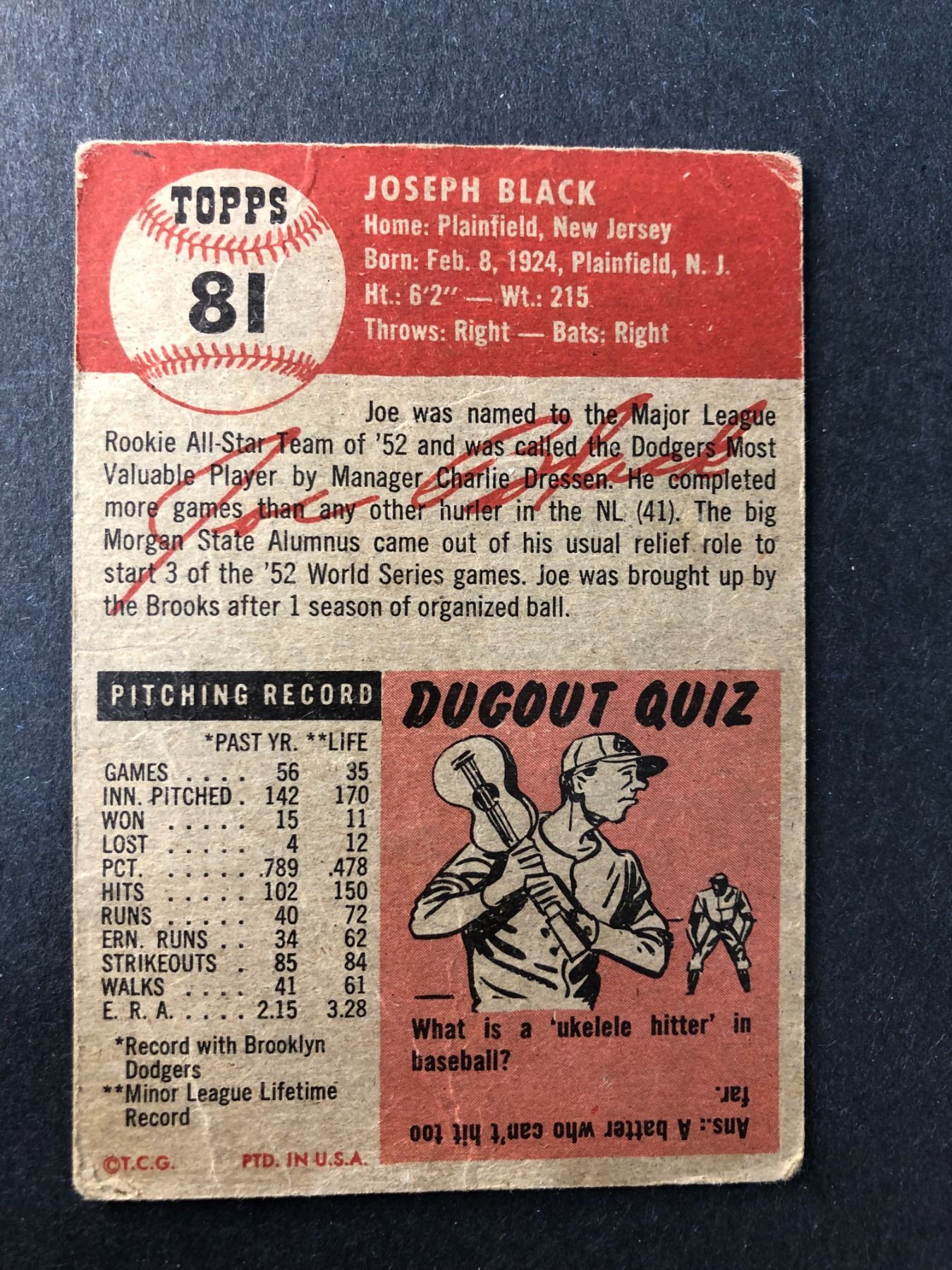 1953 Topps - Joe Black - Dodgers