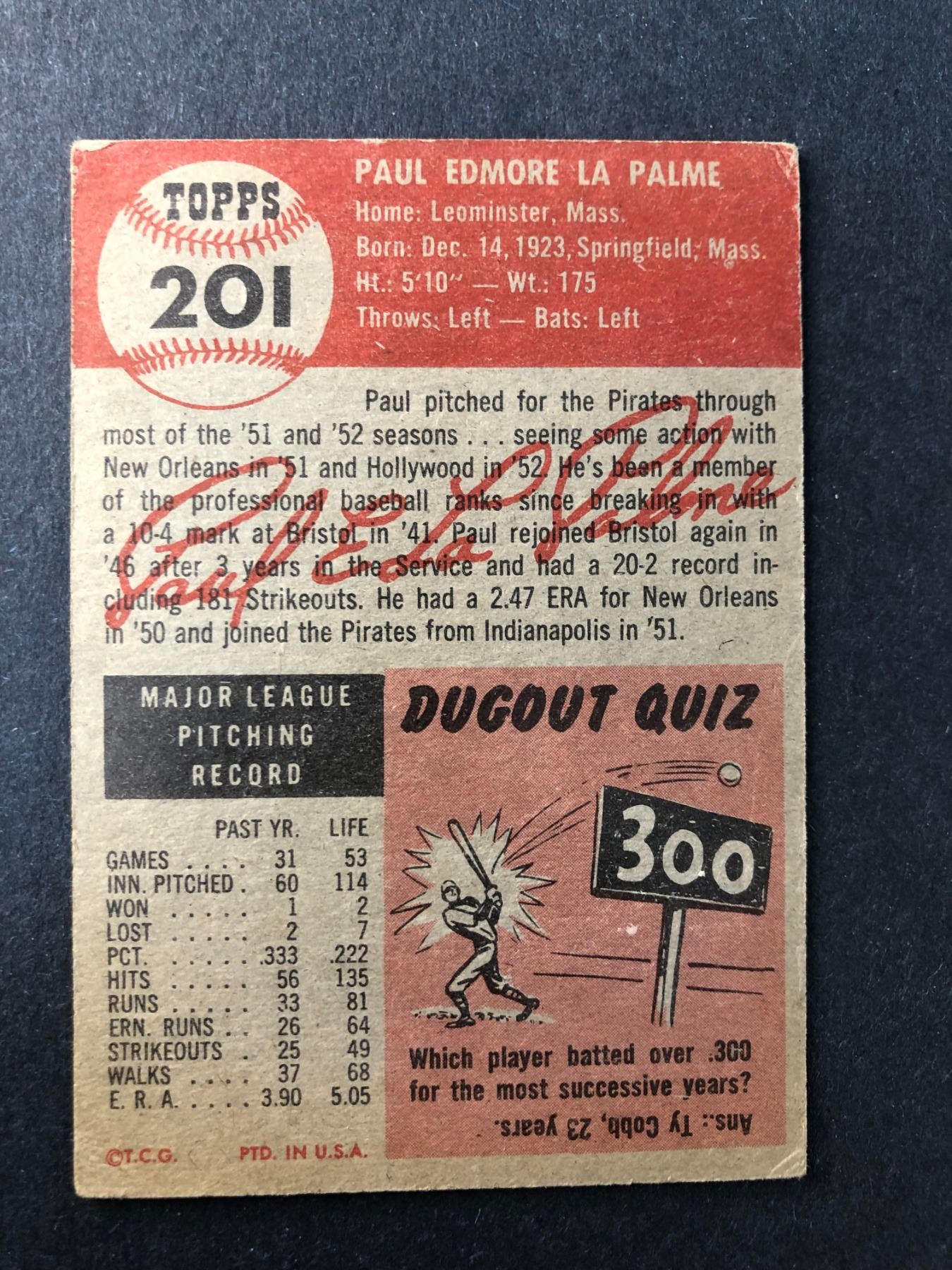 1953 Topps - Paul La Palme - Pirates