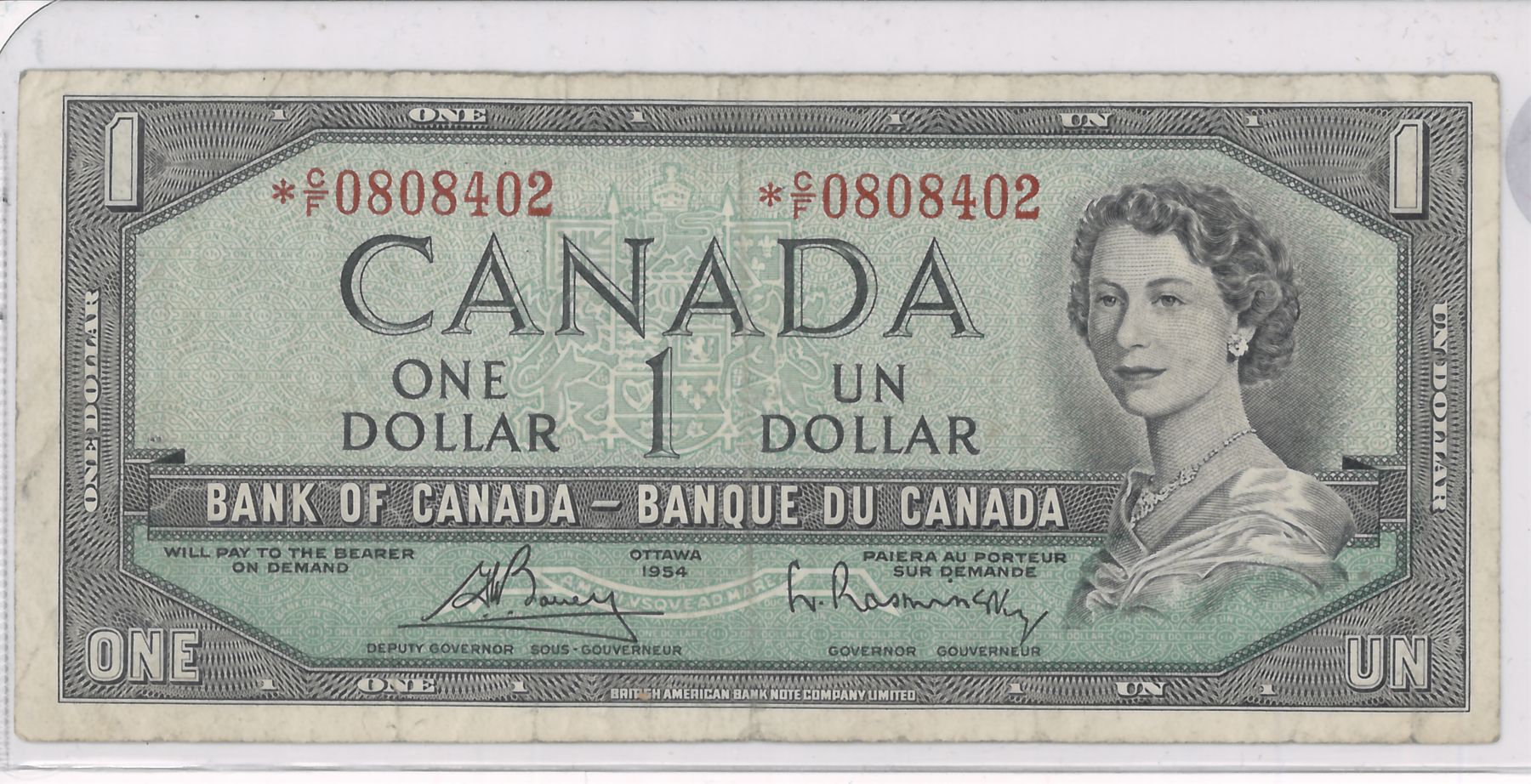 1954 $1 CANADIAN REPLACEMENT BANK NOTE