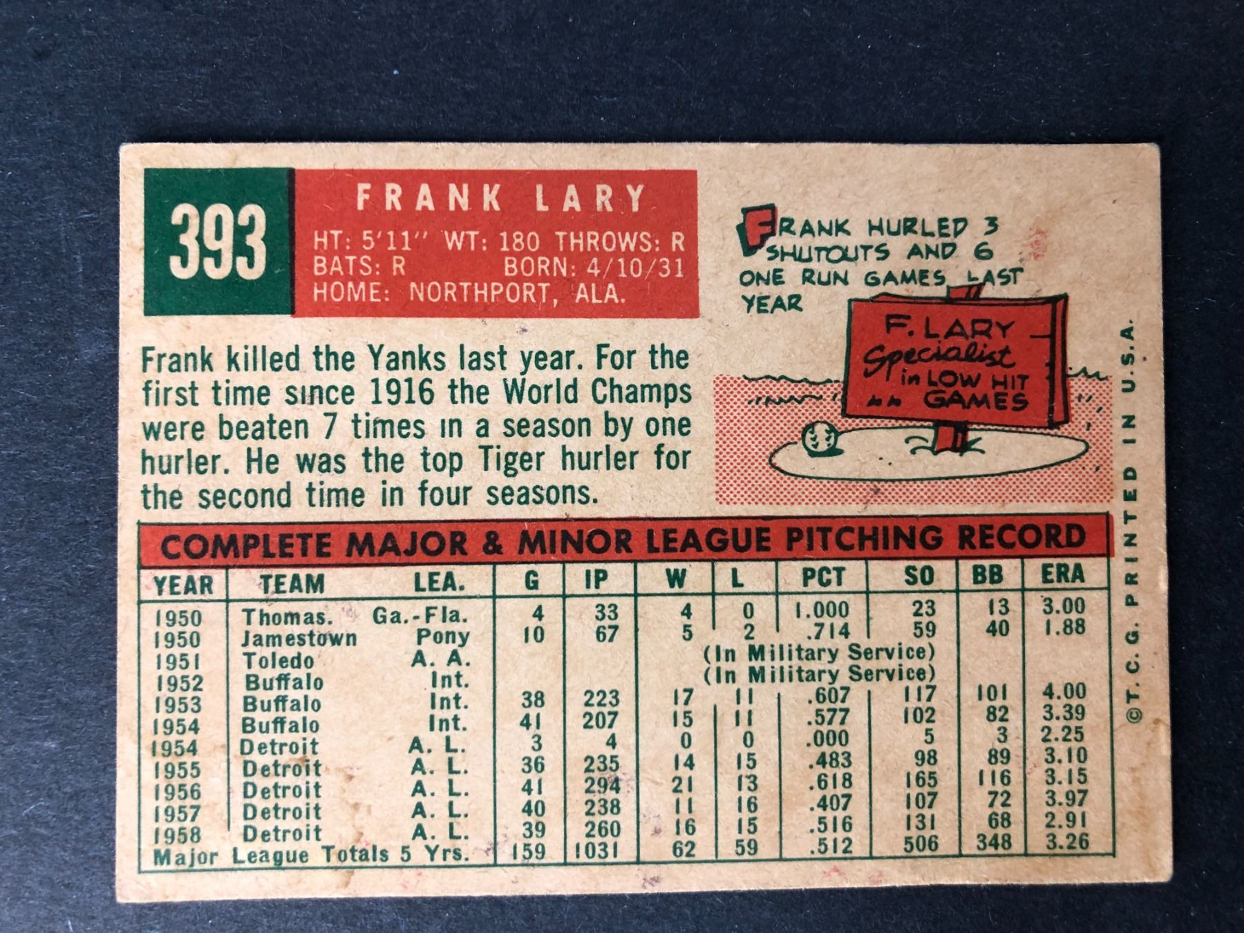 1959 Topps - Frank Lary - Tigers
