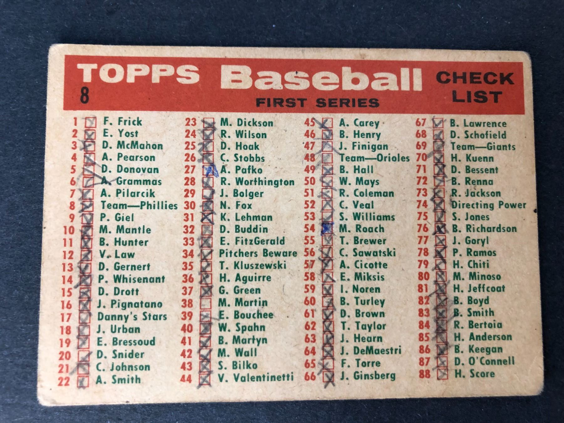 1959 Topps - Phillies Team Card & Checklist