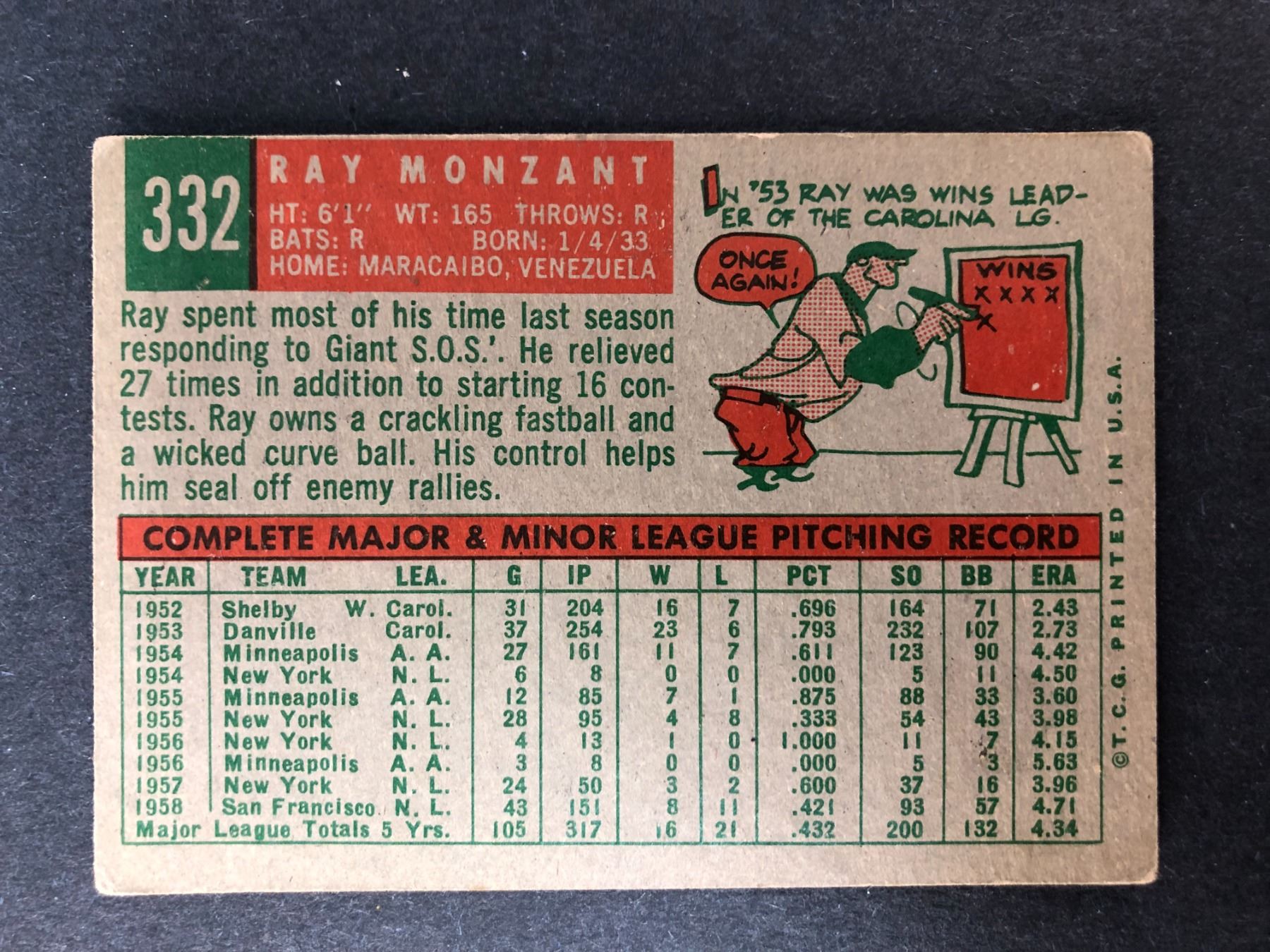 1959 Topps - Ray Monzant - Giants