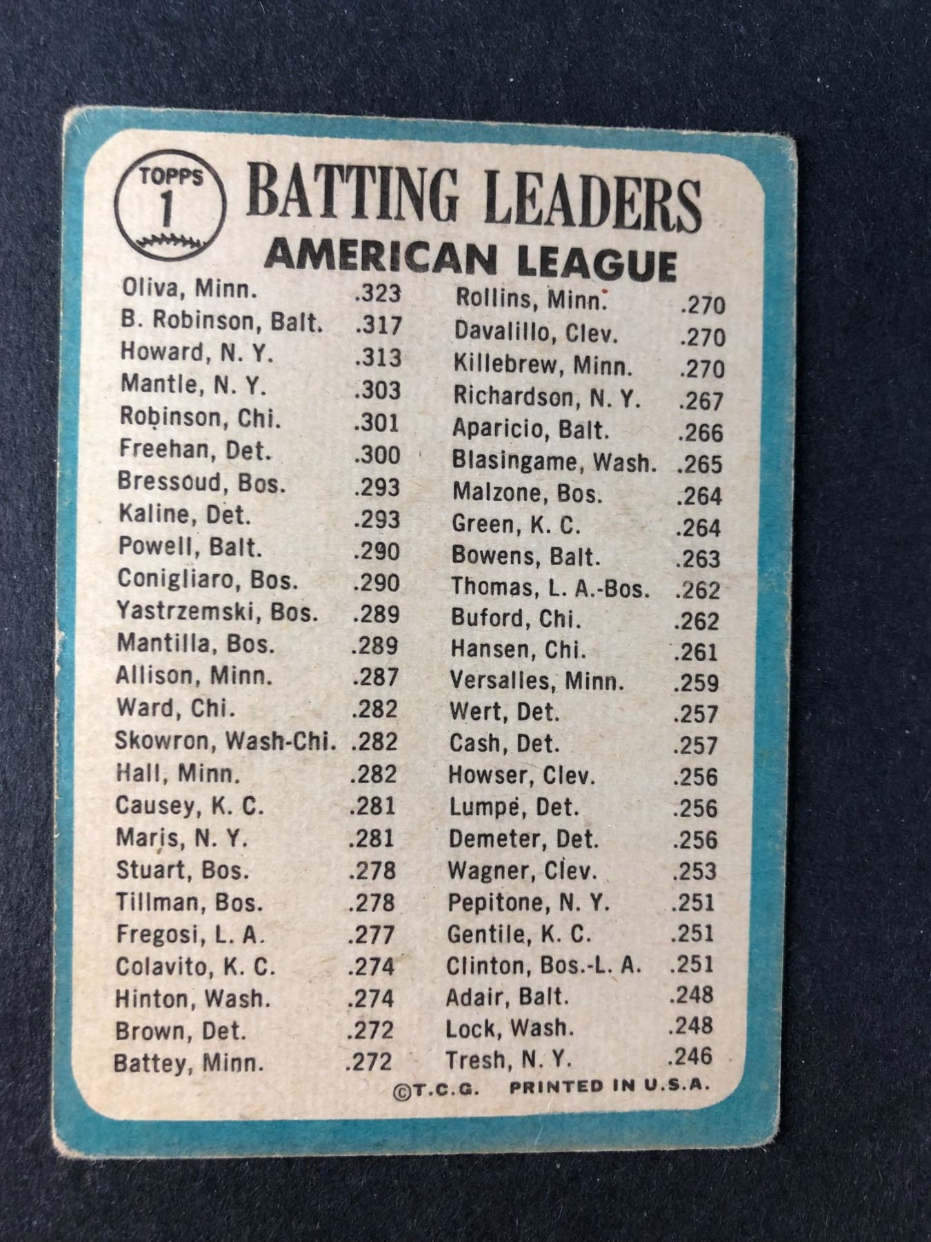1965 Topps Batting Leaders - Oliva, Robinson, Howard