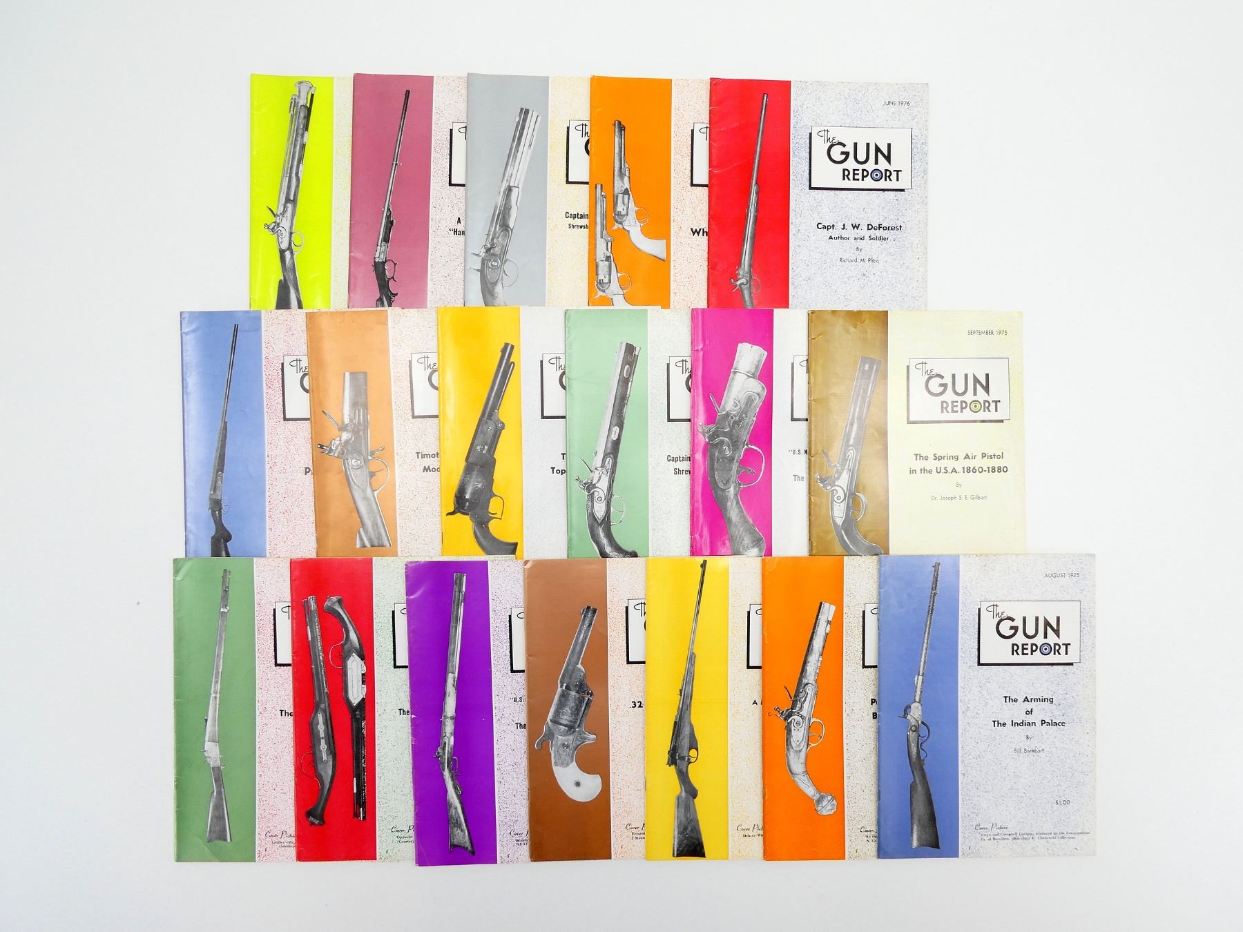 LOT INCLUDES; (18) ASSORTED BOOKS OF "THE GUN REPORT", JULY 1975 TO DECEMBER 1976, SERIES MAY NOT BE COMPLETE / SOME ISSUES MISSING / MAY CONTAIN DUPLICATES. SEE PHOTOS.