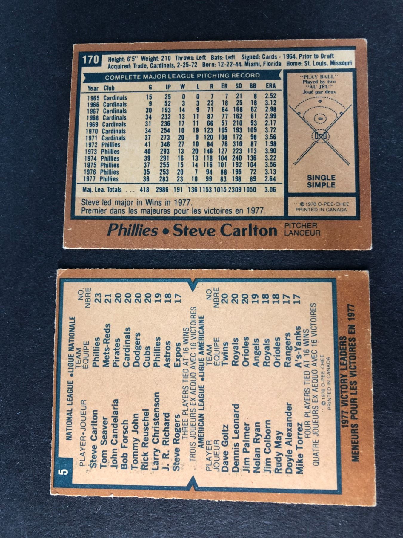 1977 OPC Steve Carlton lot
