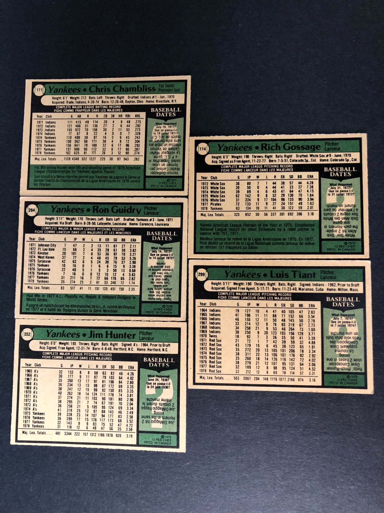 Lot of 5 1979 OPC Yankees cards