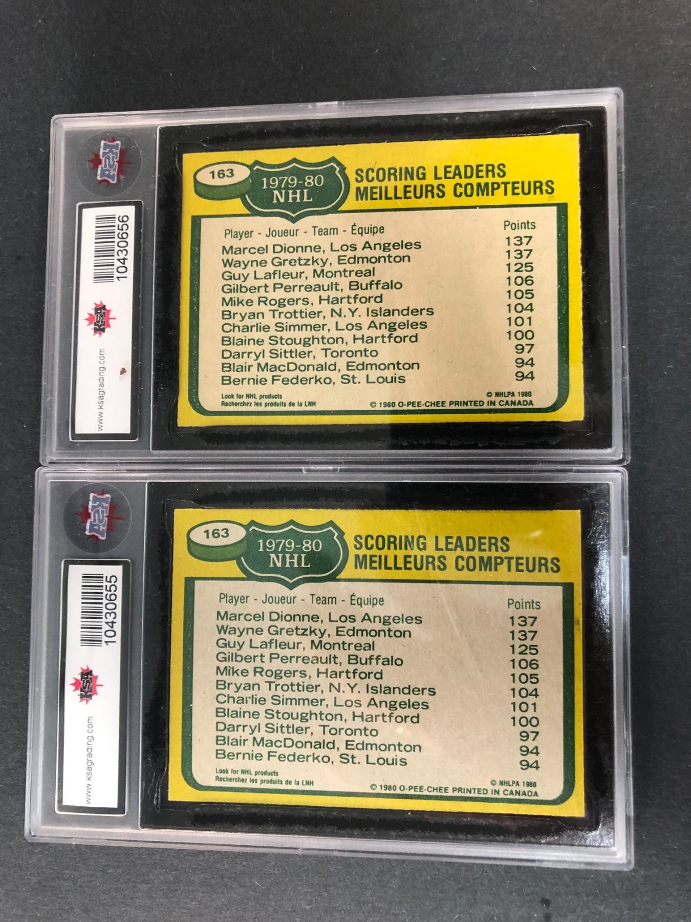 Lot of 2 1980-1981 OPC scoring leaders graded cards