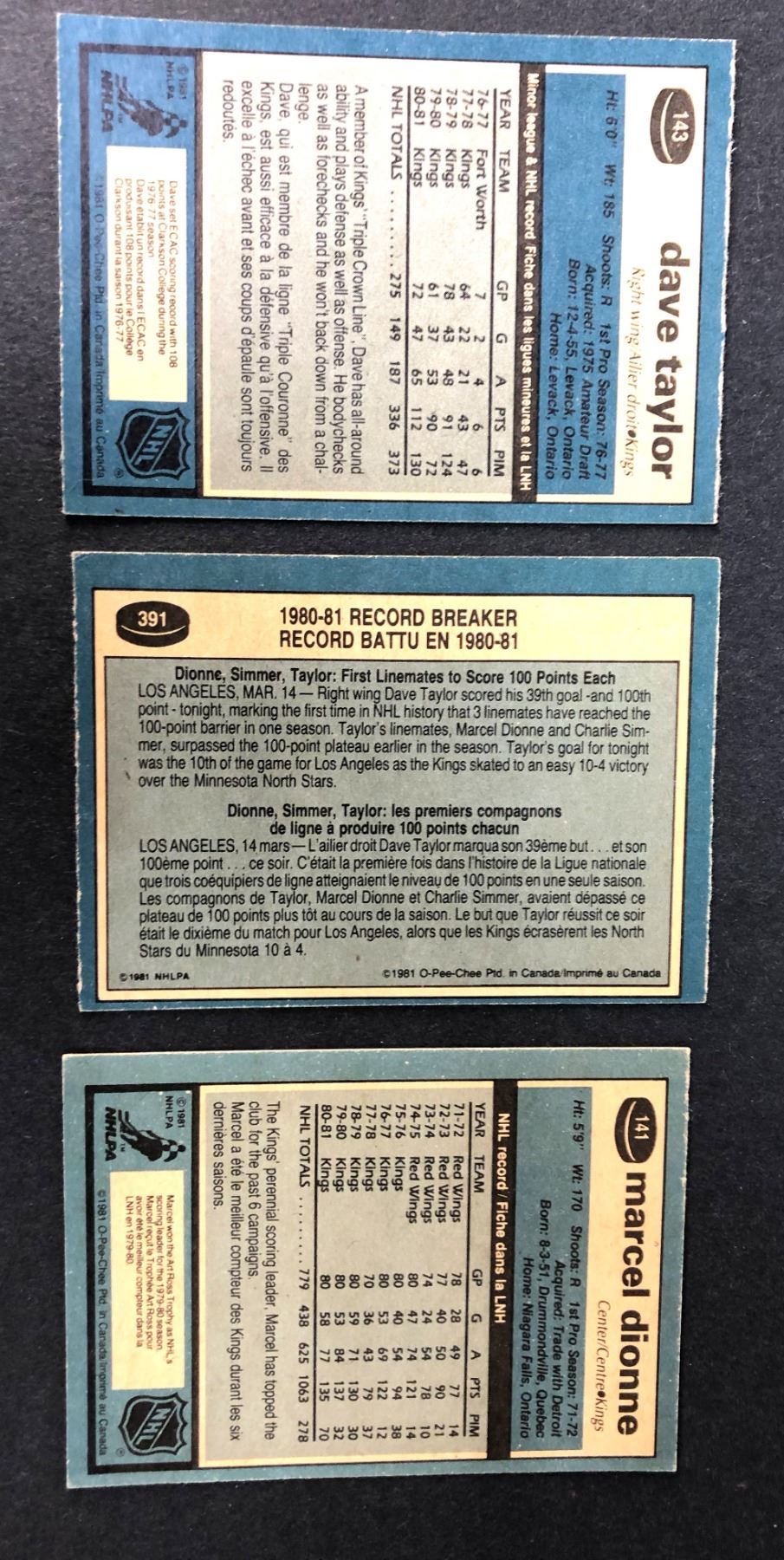 1981-1982 OPC Dave Taylor and Marcel Dionee lot of 3 cards