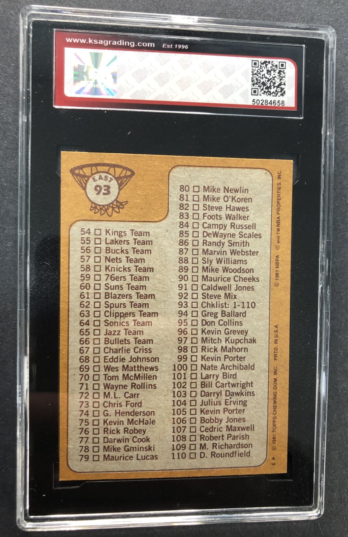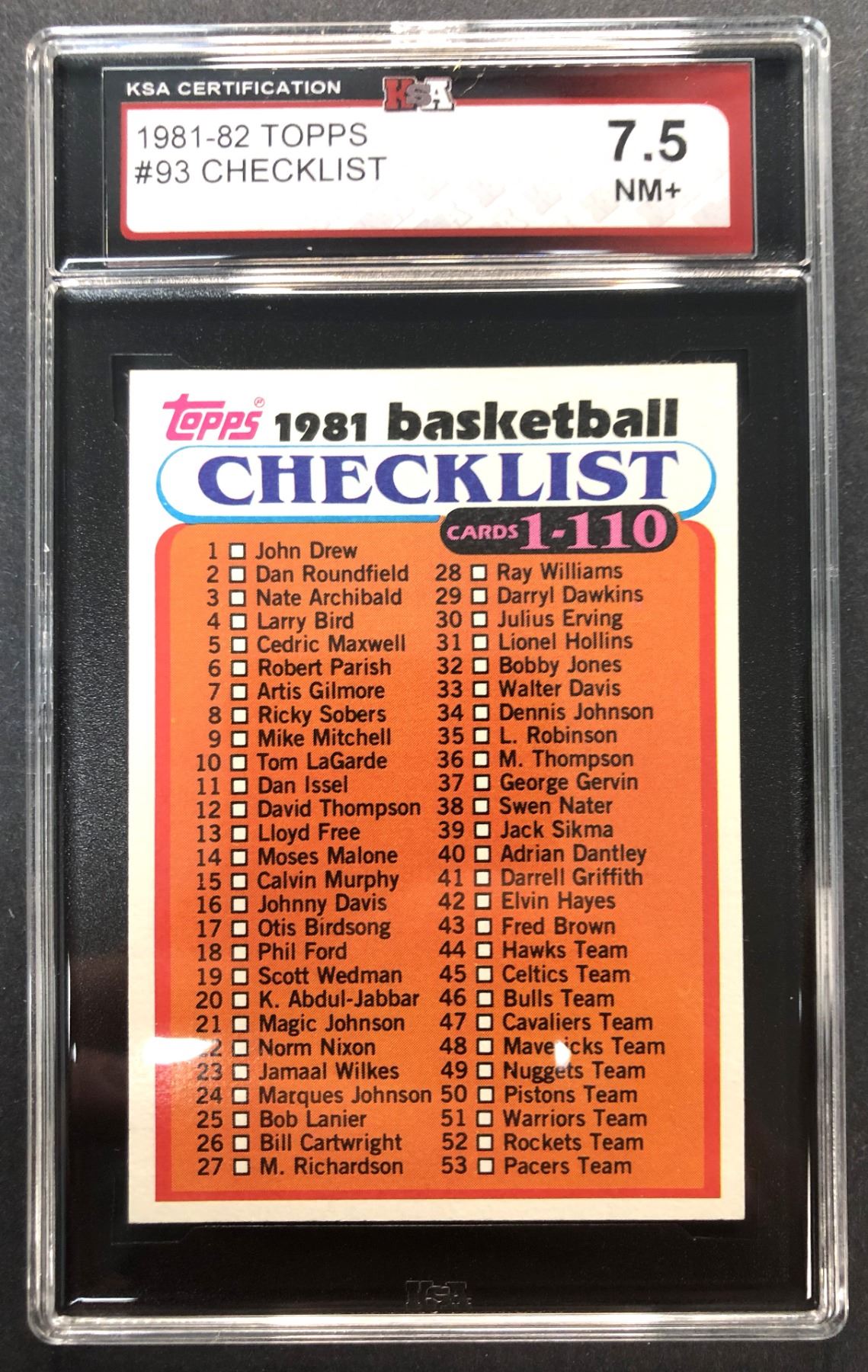 1981-1982 Topps Basketball unmarked checklist