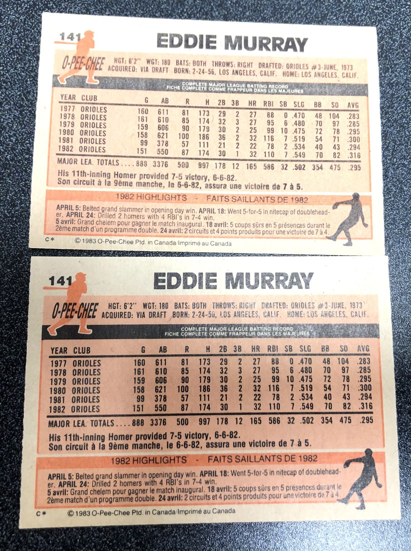 Lot of 2 1983 OPC Eddie Murray cards - 141