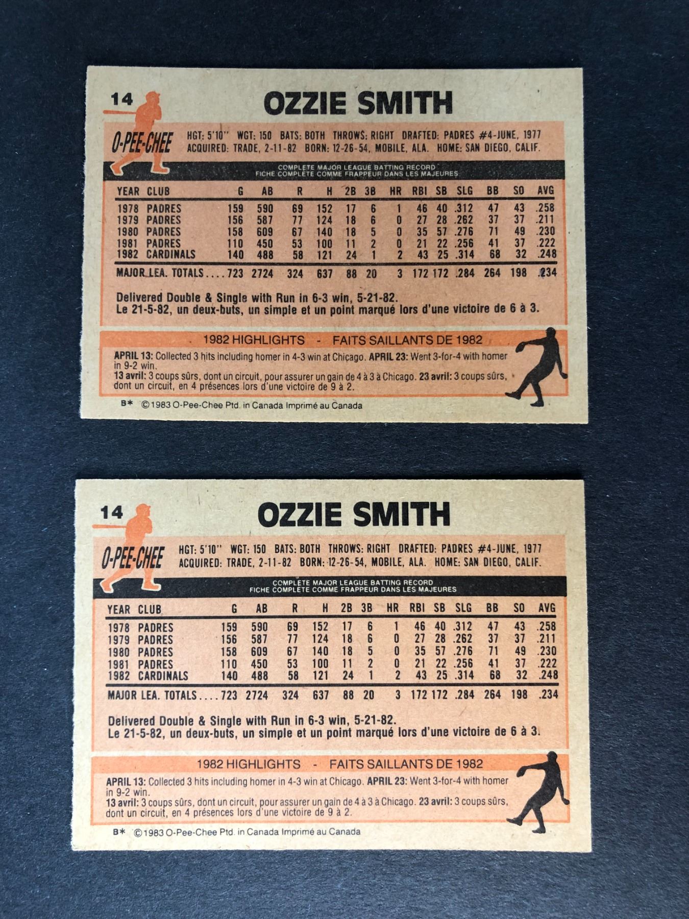 Lot of x2 1983 OPC Ozzie Smith cards