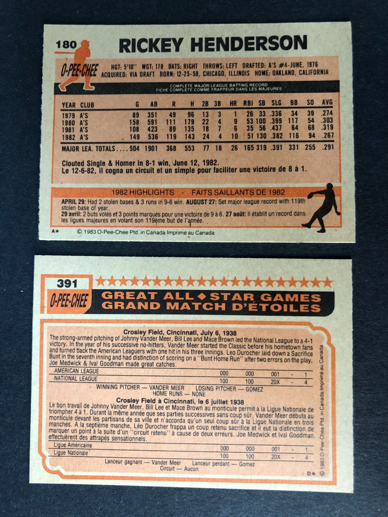 Lot of 2 1983 OPC Rickey Henderson cards