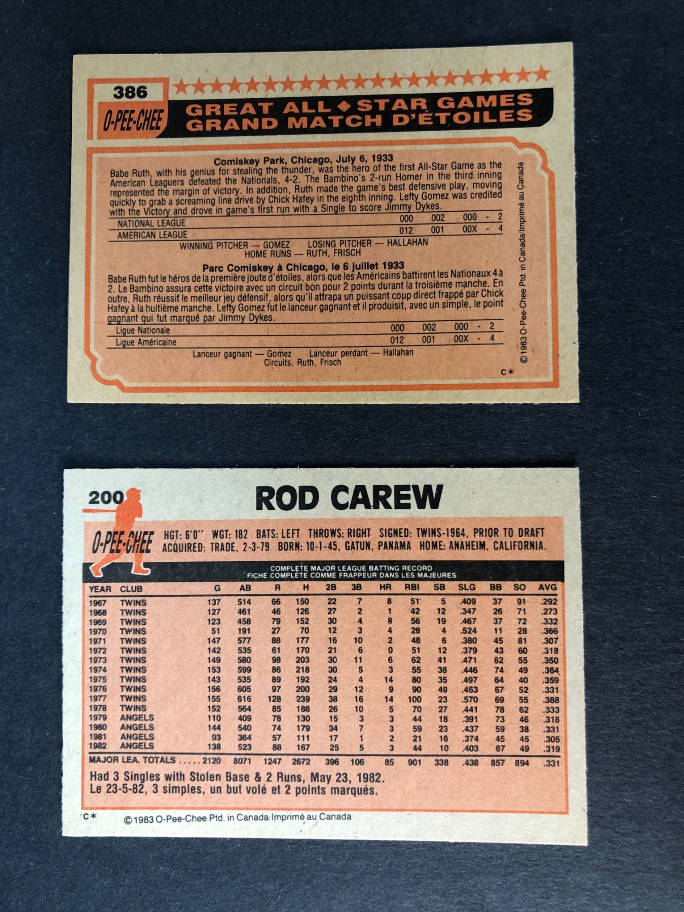 Lot of 2 1983 OPC Rod Carew cards