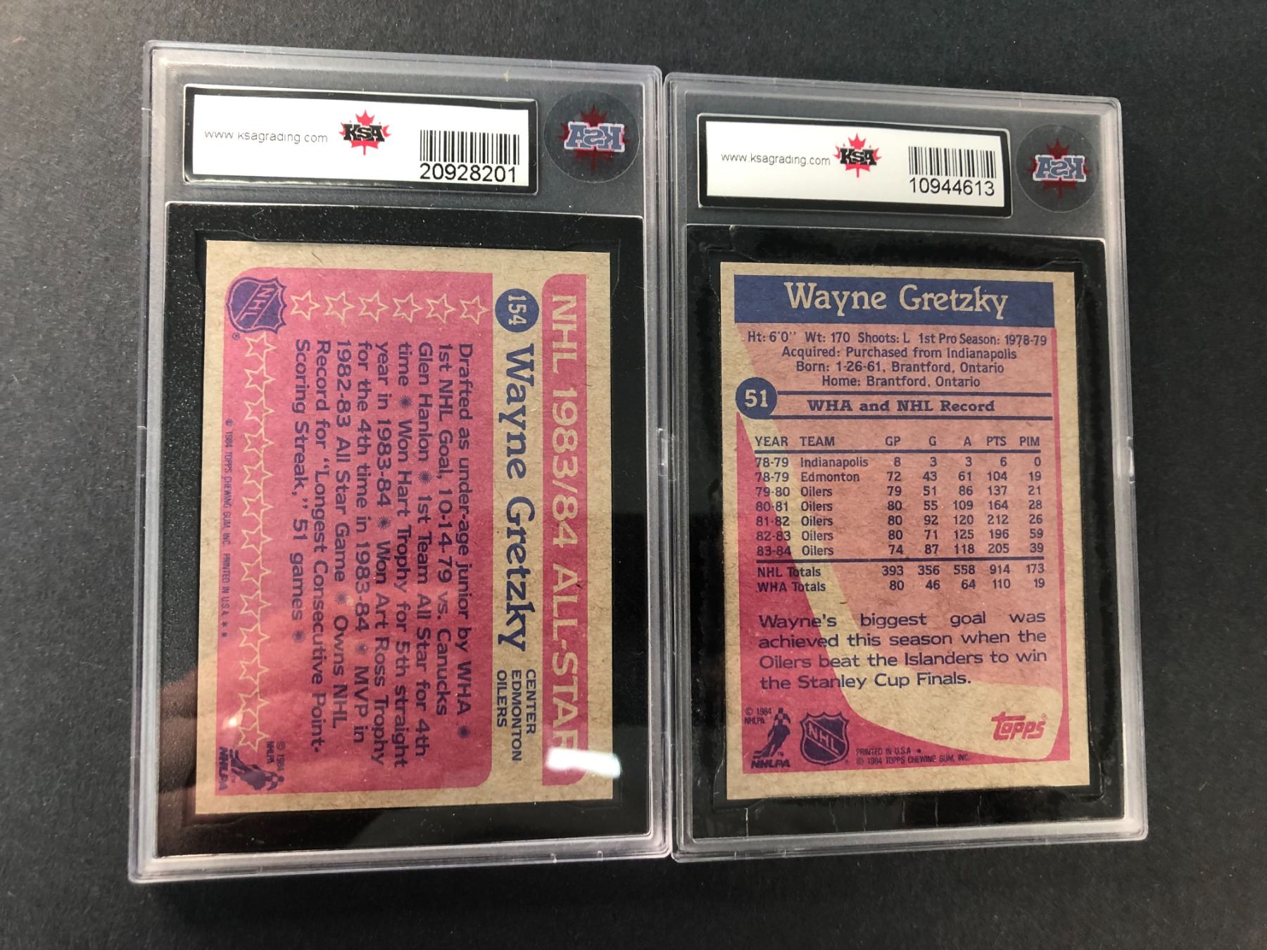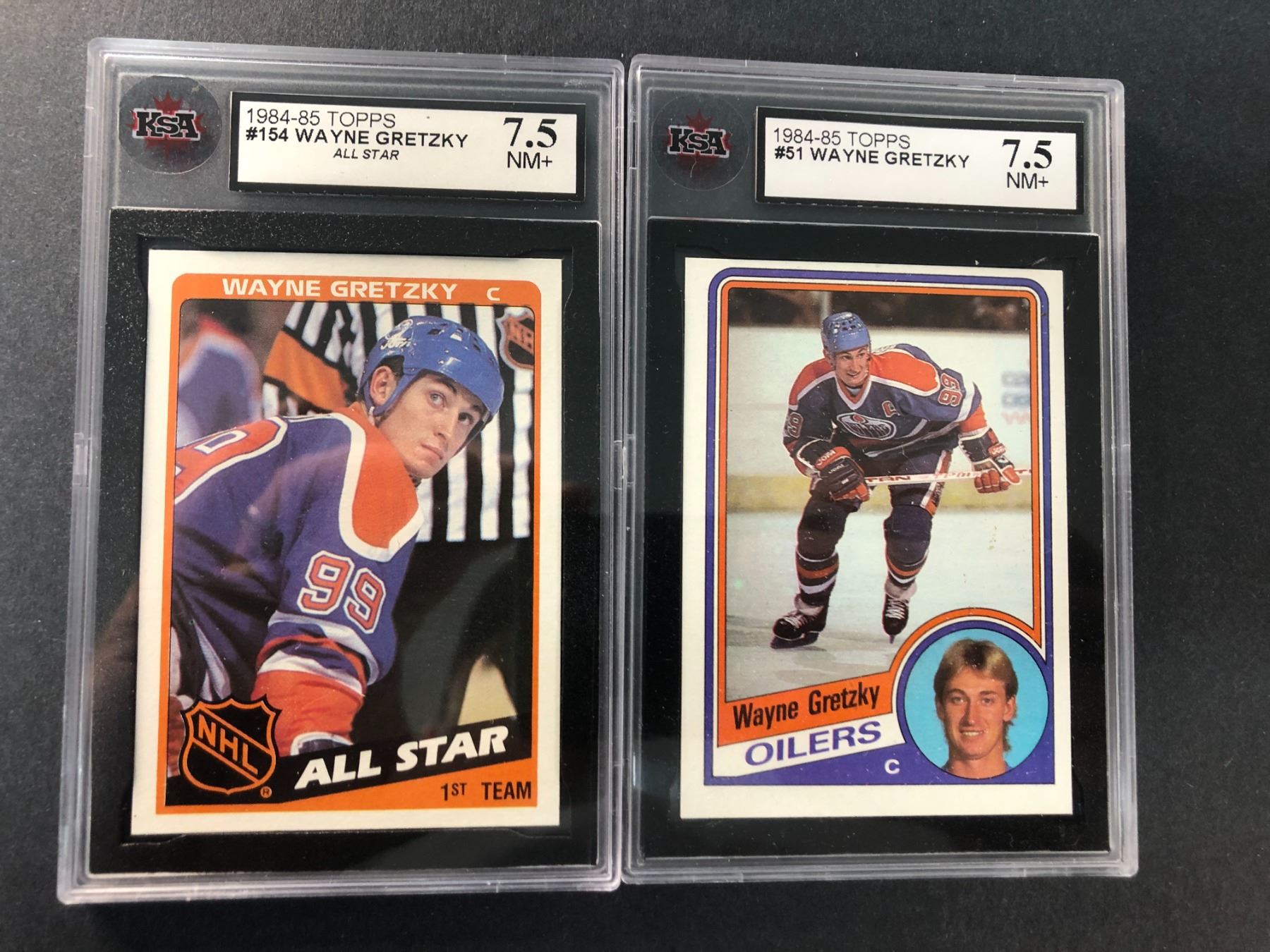 Lot of 2 different 1984-1985 graded Topps Wayne Gretzky cards