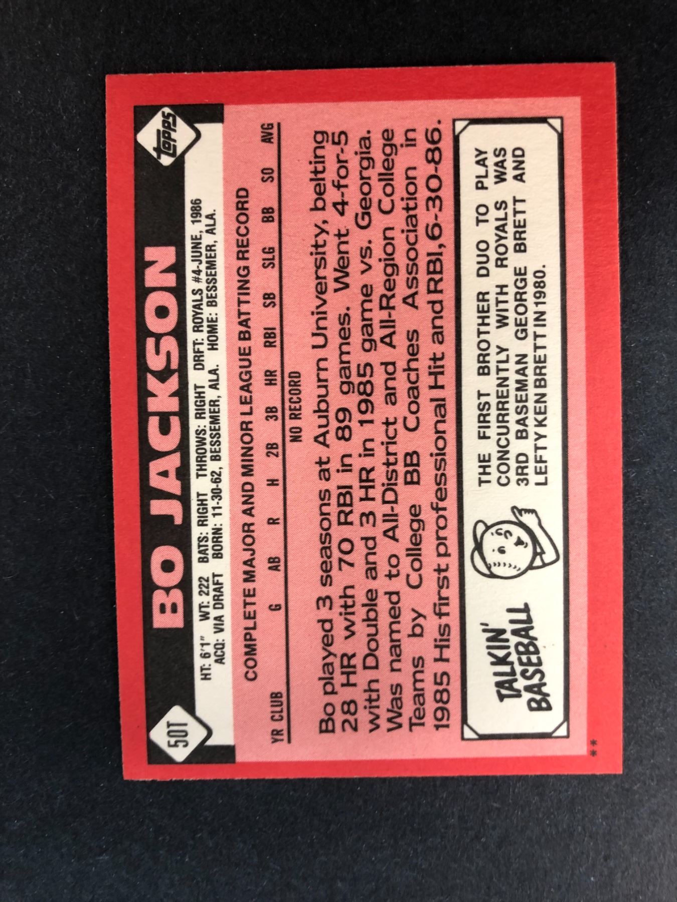 1986 Topps traded Bo Jackson rookie card - 50T