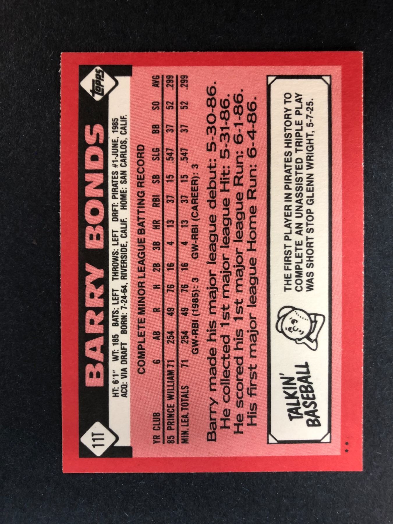 1986 Topps traded Barry Bonds rookie card - 11T