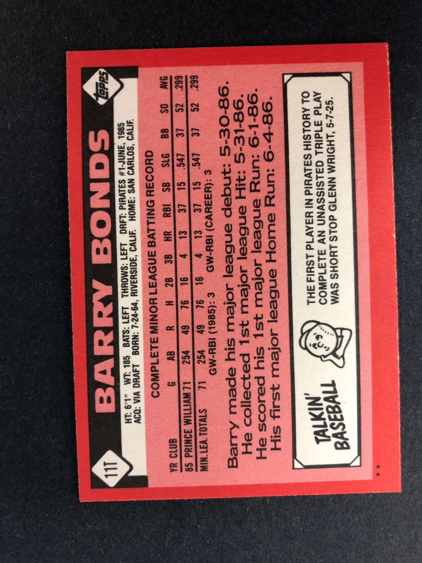1986 Topps Traded Barry Bonds rookie card - 11T