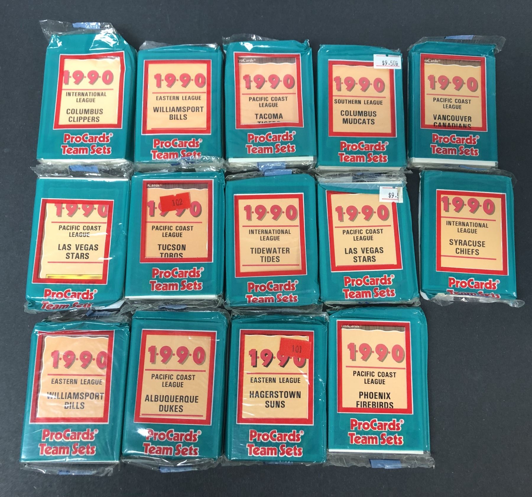 Lot of 14 sealed 1990 ProCards team sets