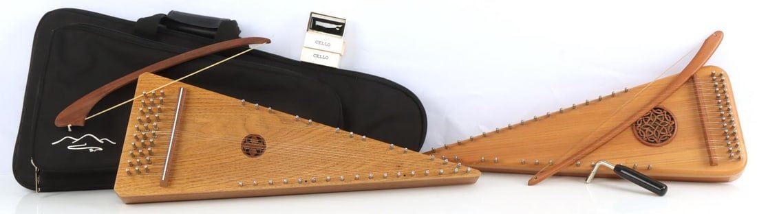 Both pre-owned and in good condition with bows. One includes soft case and string adjustment tool. Length of each is 21 inches and 20 inches. The 20-inch Psaltery is made by Unicorn.
