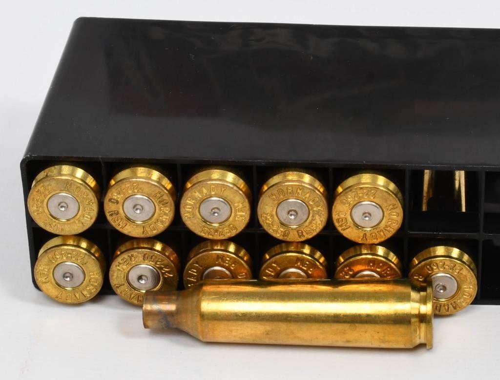 Ladies and gentlemen, up for auction is a lot comprising 20 rounds of PPU .22-250 ammunition and 15 empty brass casings. Included are 20 rounds of PPU 55 Grain soft points, this collection features 15 empty brass casings, providing an excellent opportunity for reloading enthusiasts to craft custom loads.
