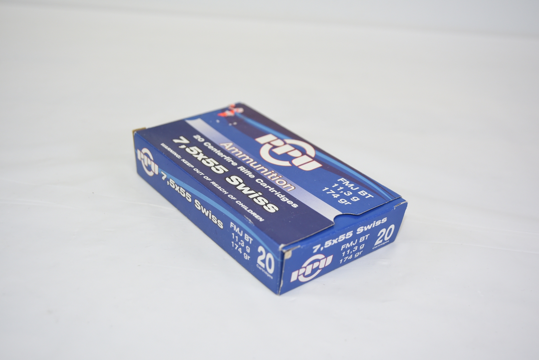 20 Rounds PPU 7,5 x55 Swiss FMJ BT 174gr. Ammunition