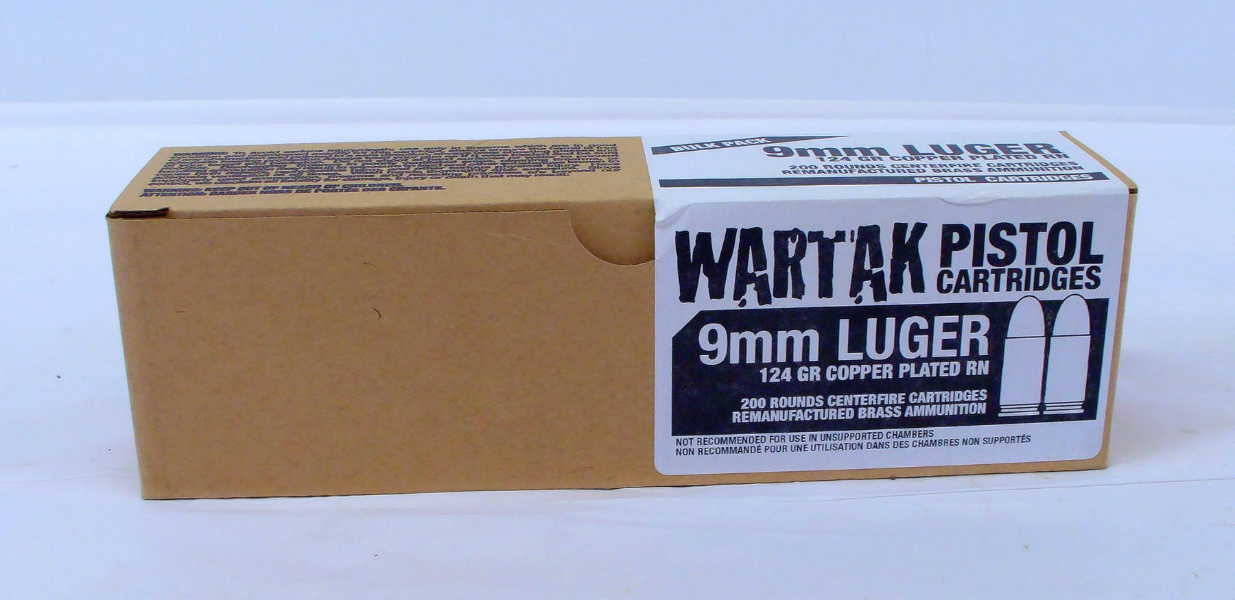 200 Rounds Wartak Pistol Cartridges 9MM Luger Ammunition