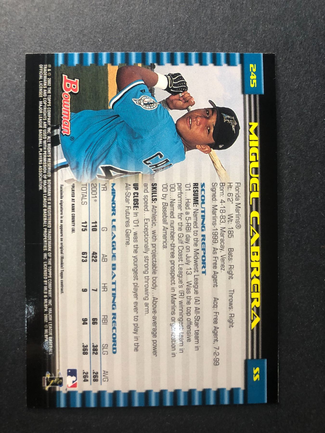 Miguel CABRERA rookie card- Marlins