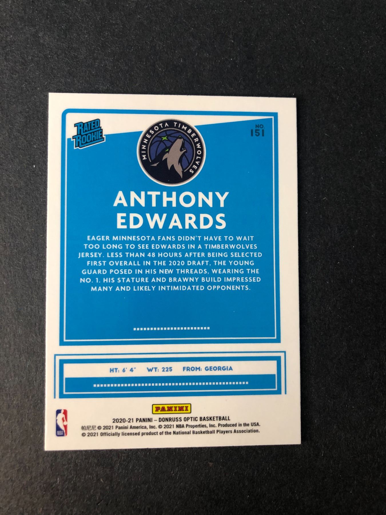 Anthony EDWARDS Rookie Card - 151