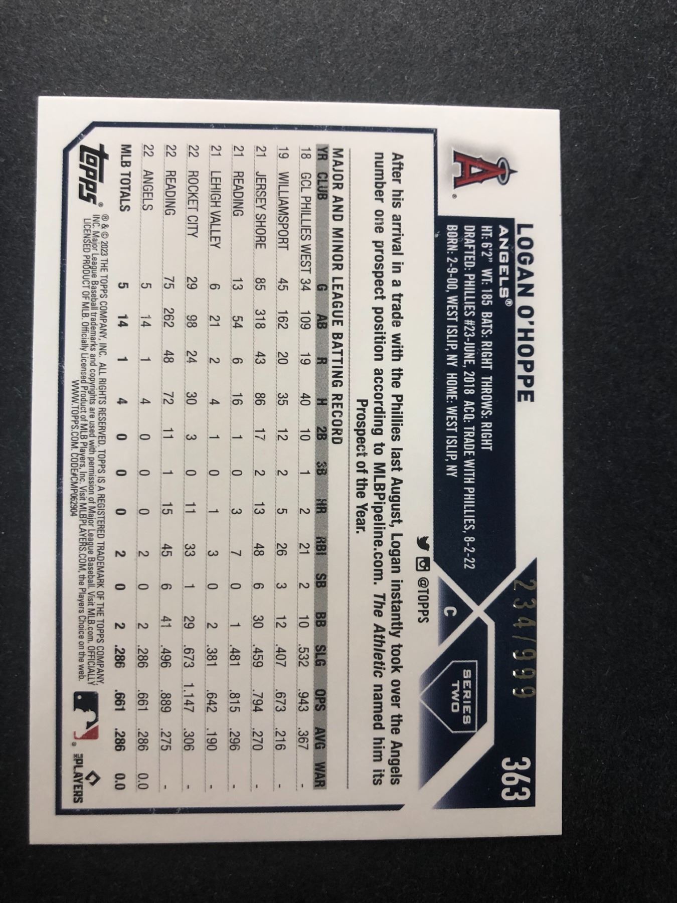 Logan O'Hoppe Rookie card