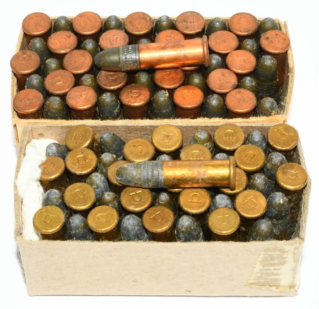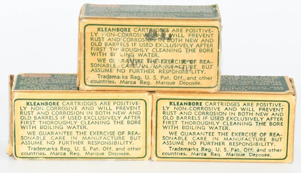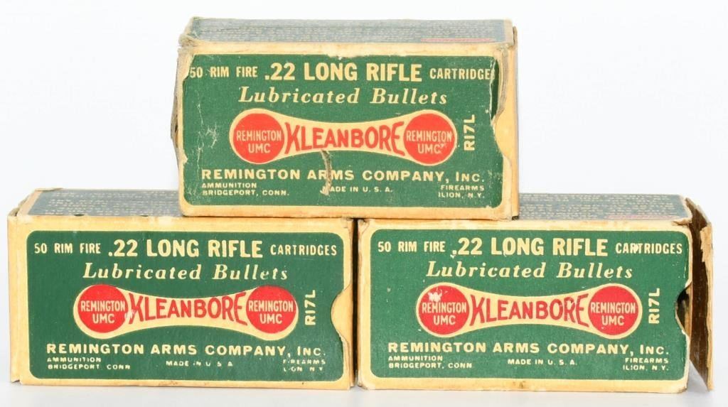 Greetings, esteemed collectors and enthusiasts of historical armaments! Elevate your collection with this remarkable find ? three collector dog bone boxes of Remington .22 LR Ammunition, each featuring Kleanbore priming. Two of these distinctive boxes are full, containing a total of 100 rounds, while the third box is mostly full. Box #R17L marks these treasures with the signature Remington quality and craftsmanship. Before you immerse yourself in this enthralling bidding experience, take a moment to appreciate the historical significance of these Remington dog bone boxes. Ensure seamless compliance with local ammunition regulations for the joyous integration of these distinctive boxes into your esteemed collection. Bid with enthusiasm, collectors, and may the acquisition of these Remington .22 LR Ammo dog bone boxes bring both delight and a unique touch of historical artistry to your cherished assortment! Happy bidding!