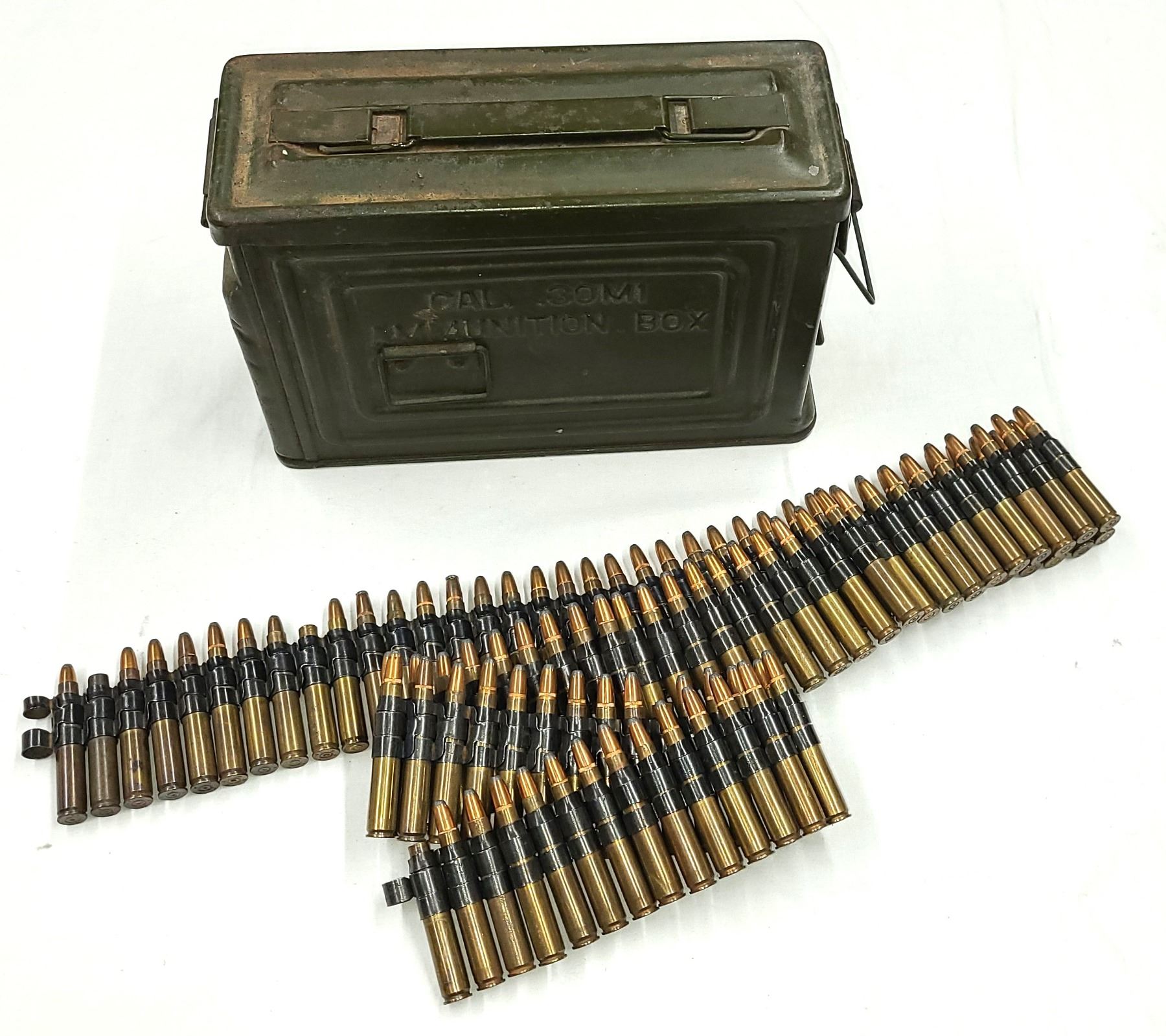 30 Cal Ammo Linked Belt in Ammo Can - US Military Issue Can