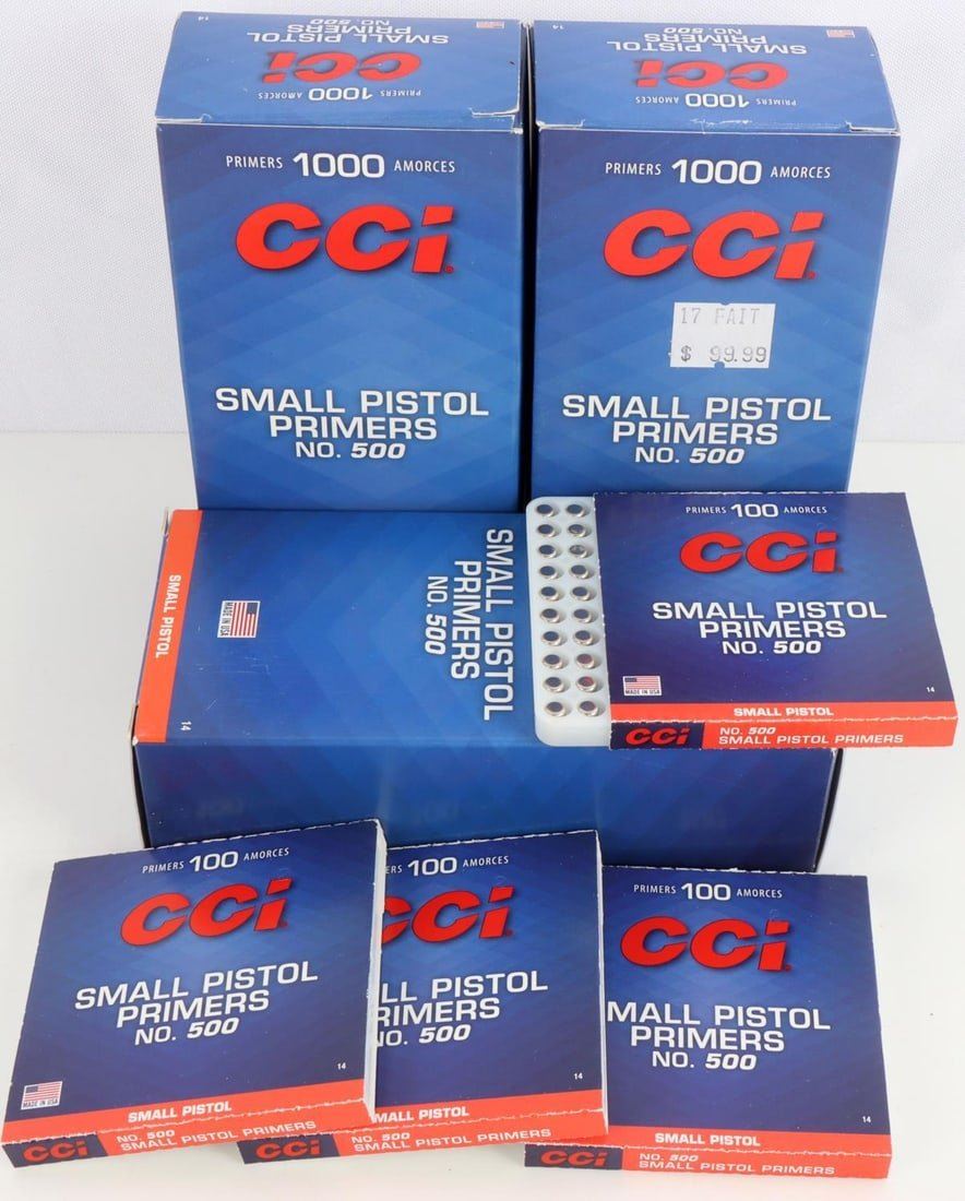 LOCAL PICK UP ONLY Lot of three (3) boxes of 1000 CCI Small Pistol Primers No. 500. Additional shipping fees may apply. No international shipping or to Alaska and Hawaii. Know your state laws prior to bidding.