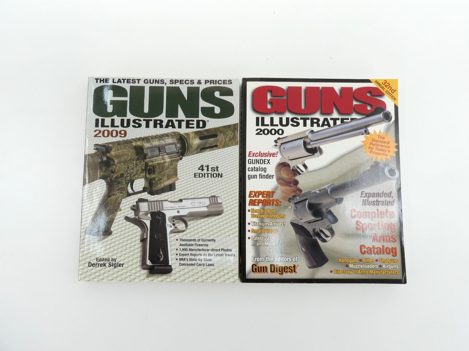 LOT INCLUDES; (1) 32ND ANNUAL EDITION GUNS ILLUSTRATED 2000", BY THE EDITORS OF GUN DIGEST, SOFT COVER, ISBN: 0-87341-757-7 & (1) "41ST EDITION GUNS ILLUSTRATED 2009", EDITED BY DERREK SIGLER, SOFT COVER, ISBN: 978-0-89689-673-4. SEE PHOTOS.