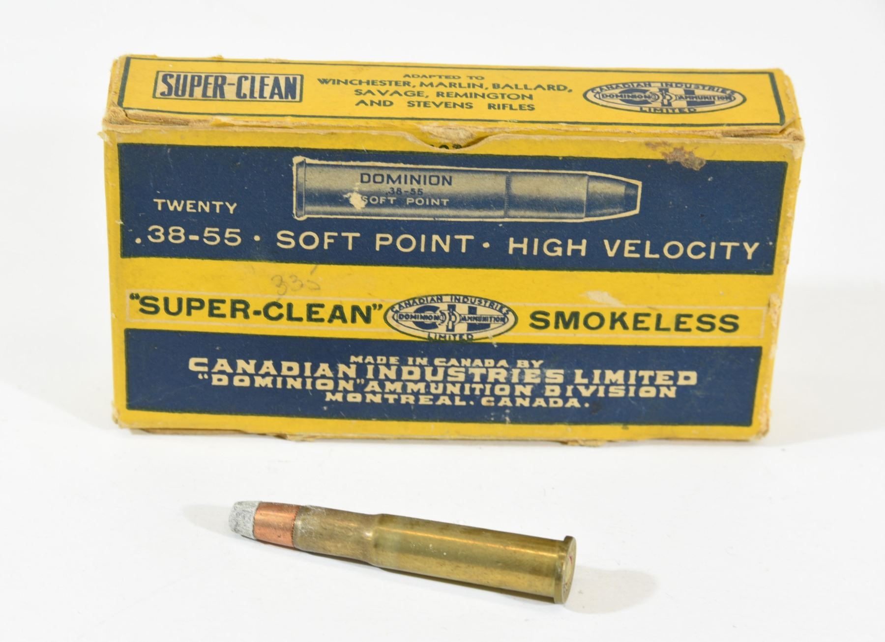 One box of Dominion 38-55 255 gr soft point with 14 rounds.
