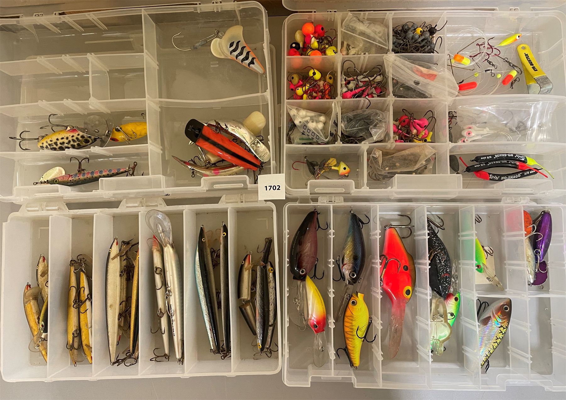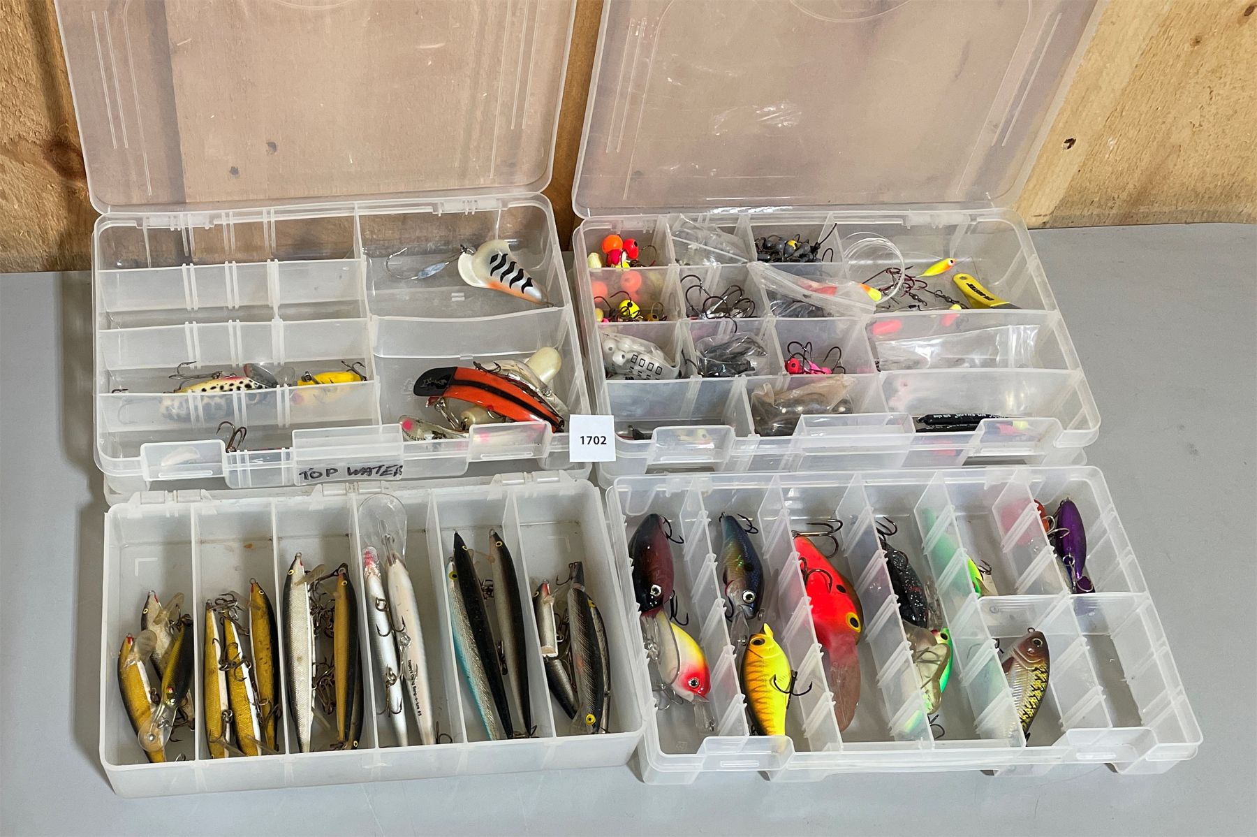4 TRAYS OF FISHING LURES & FISHING HOOKS